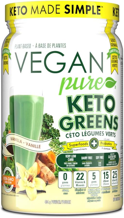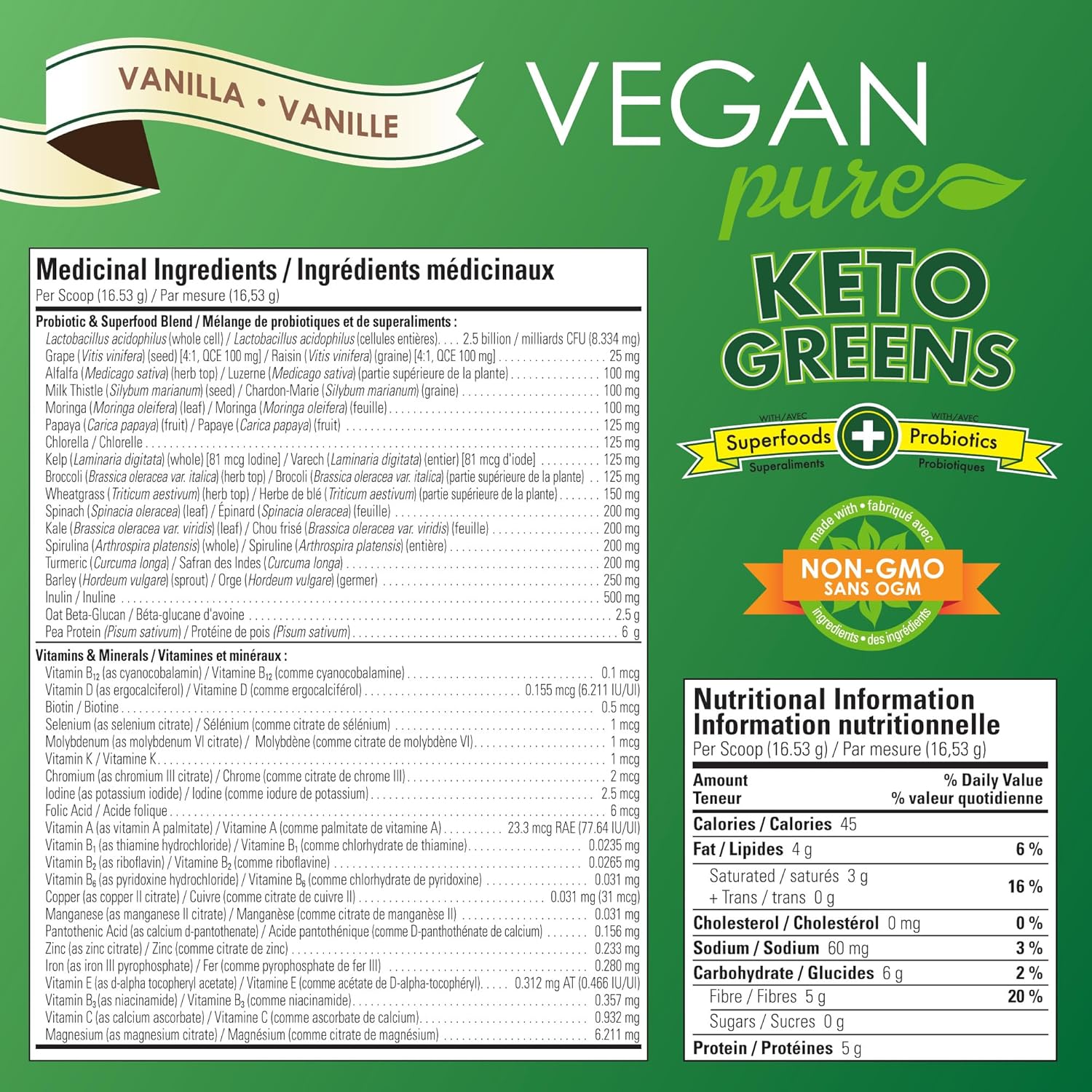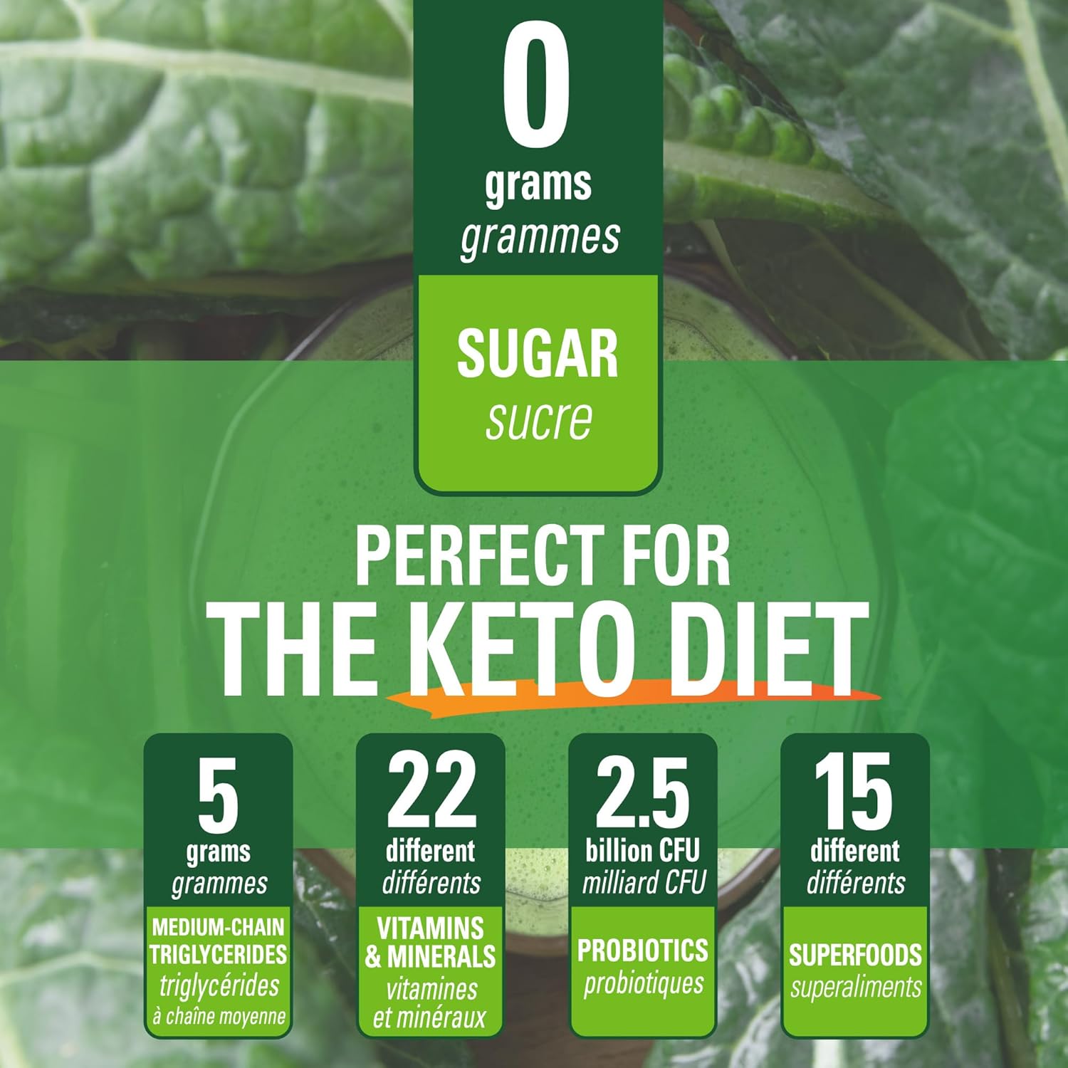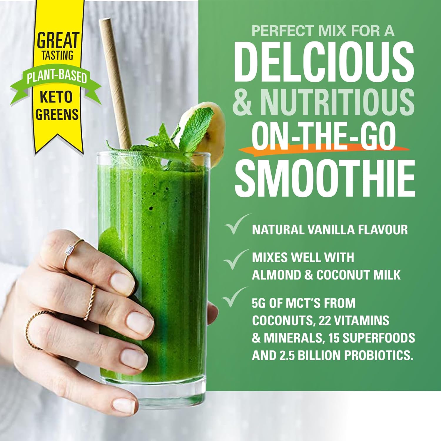 純素純酮綠葉蔬菜,含 MCT 和益生菌 - 香草味,15 種超級食物,22 種維生素,營養豐富的混合物,水果、綠葉蔬菜和蔬菜,0 克糖,無麩質 - 24 份
