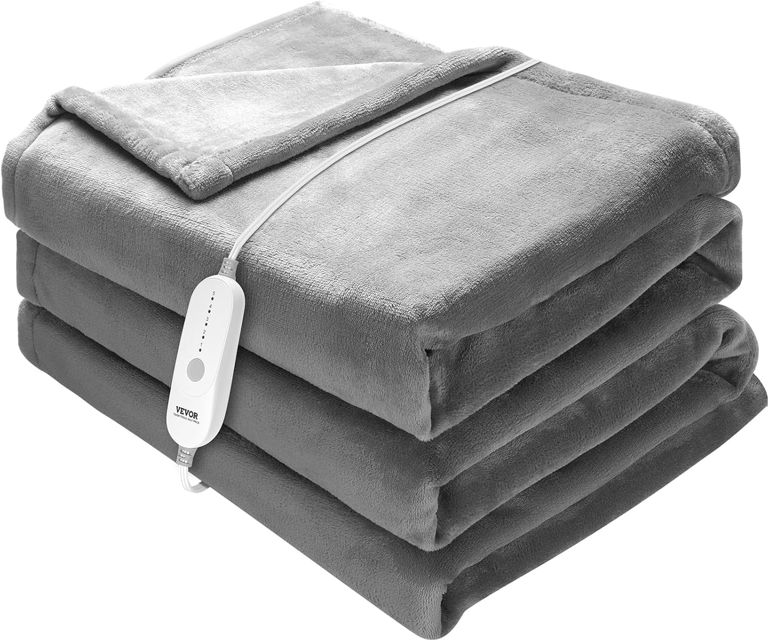 VEVOR 電熱毯,72 英寸 x 84 英寸全尺寸,柔軟法蘭絨加熱毯,帶 10 小時定時器自動關閉和 5 個加熱級別,適用於沙發,可機洗,ETL 和 FCC 認證(灰色)