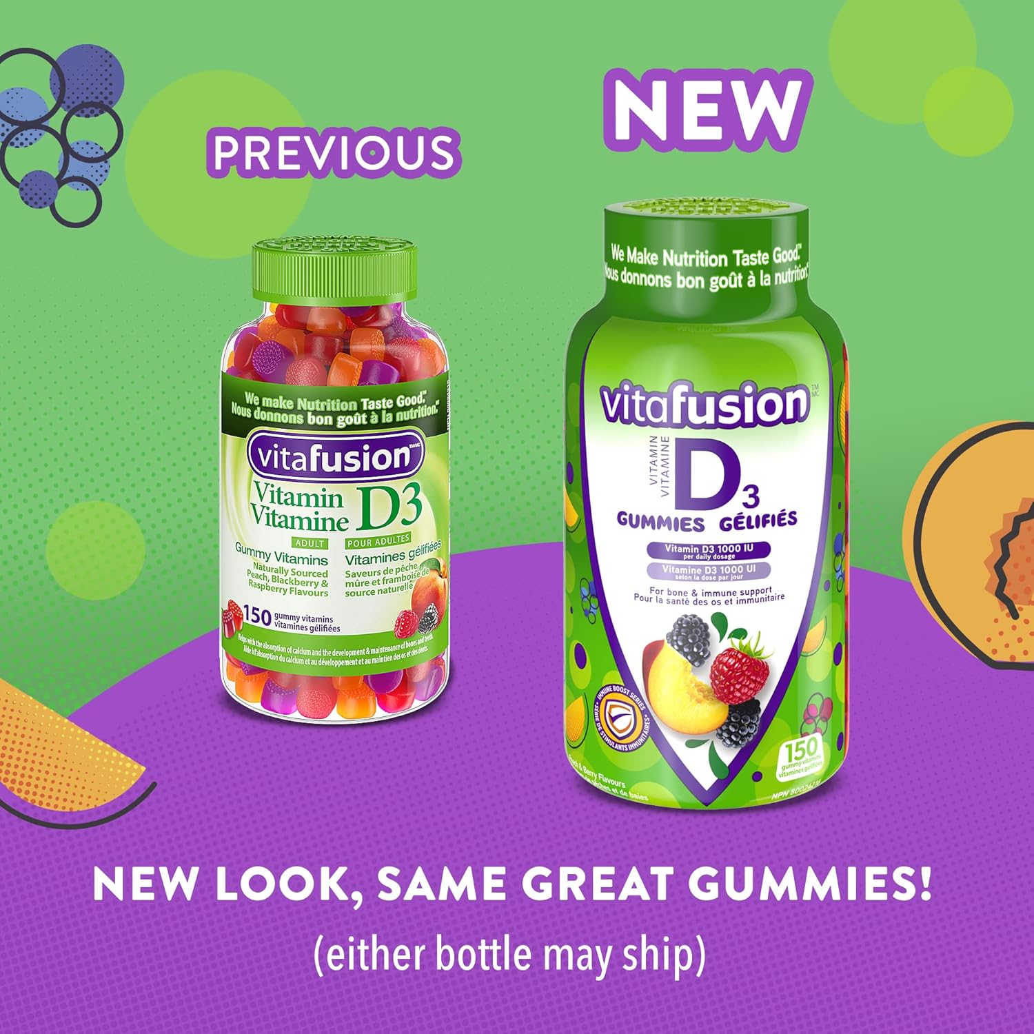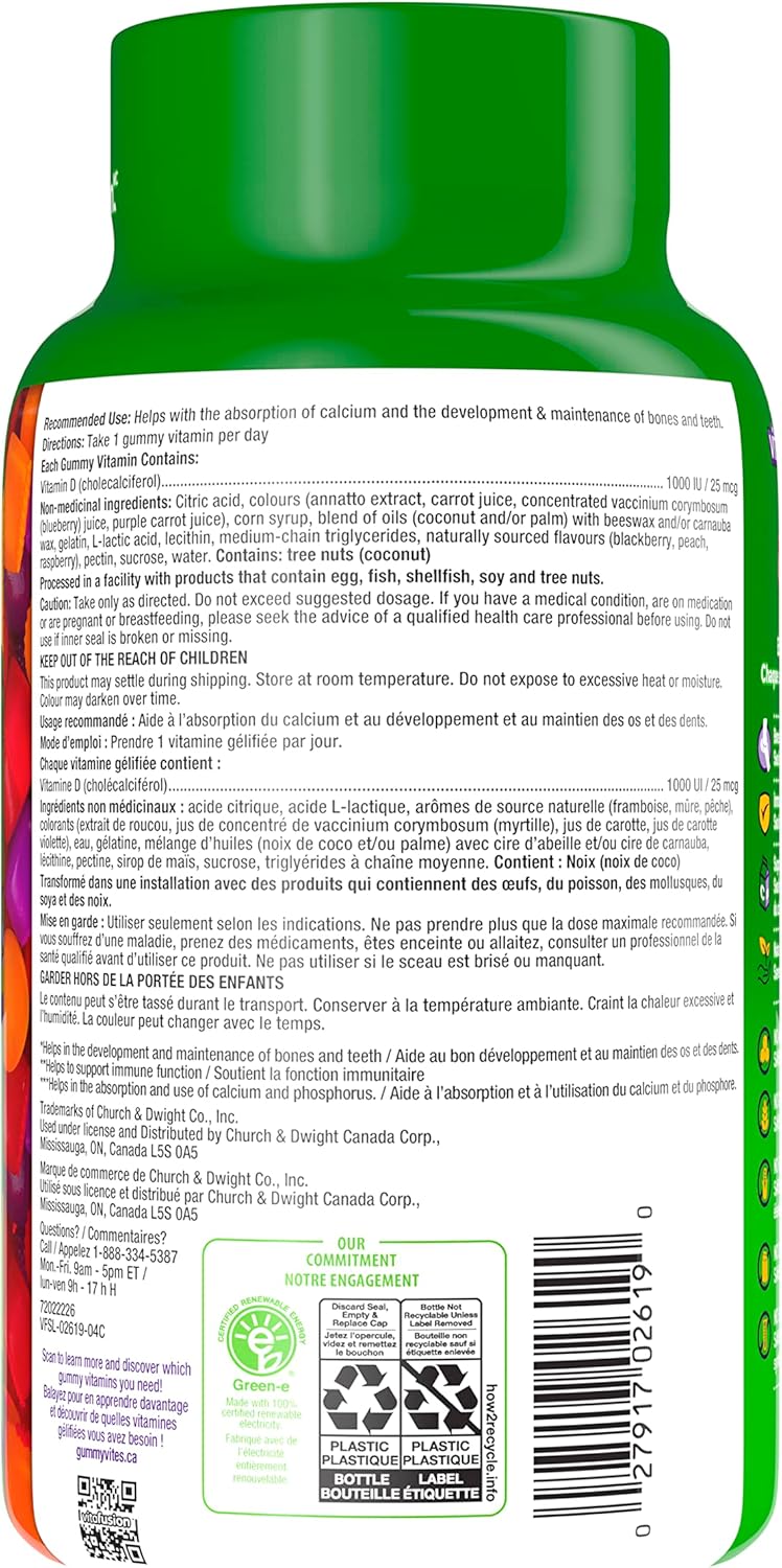 Vitafusion D3 成人維生素軟糖,1000 IU 維生素 D3 每日劑量,支持骨骼和牙齒*,150 粒,5 個月用量,包裝可能有所不同