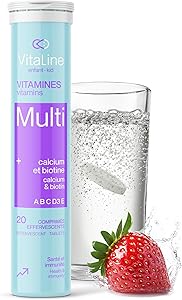 Vitaline 兒童每日多種維生素補充劑 - 兒童多種維生素,含維生素 A、C、D、E、B1、B2、B5、B12、B6、葉酸、生物素和鈣 - 草莓口味,20 片泡騰片