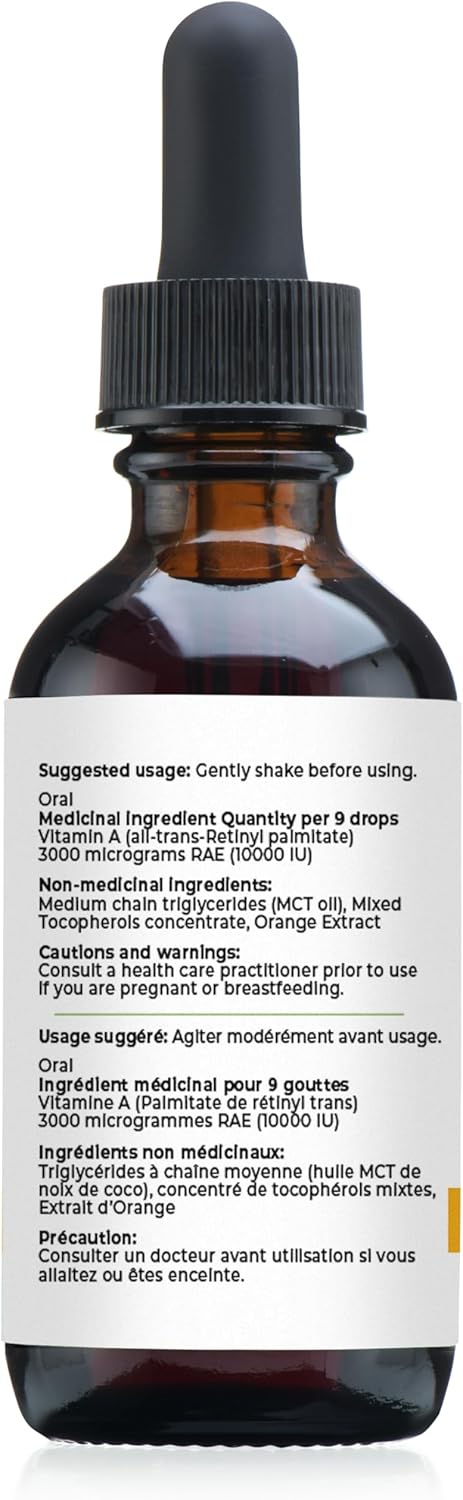 維生素 A 滴劑 10000 IU - 液體視黃醇棕櫚酸酯與椰子 MCT 油,純素膠束化維生素 A 補充劑,適用於皮膚和痤瘡