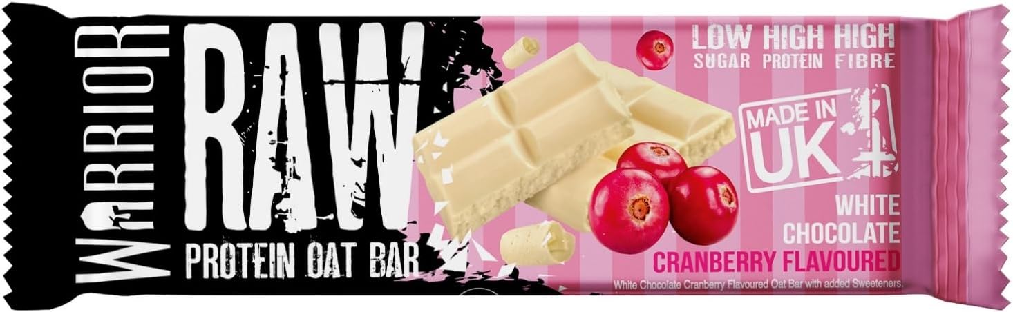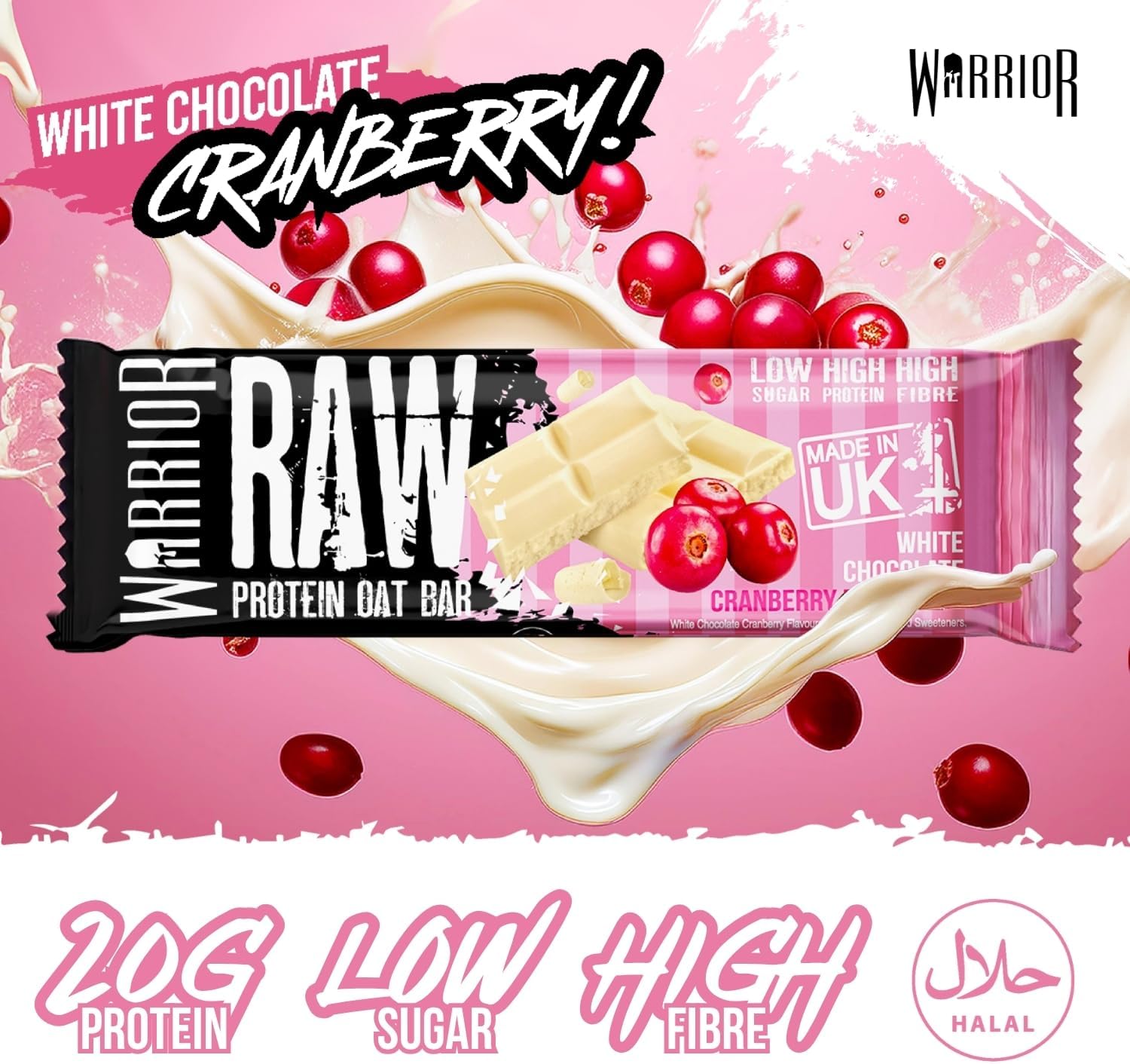 Warrior 生蛋白棒 - 12 x 75 克燕麥棒 - 高纖維、低糖 - 理想的代餐或健康營養能量零食(白巧克力蔓越莓)