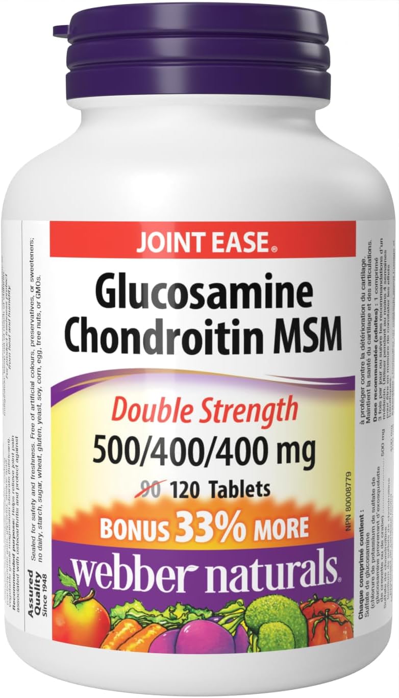 Webber Naturals 高級膠原蛋白(含天然蛋殼膜 (NEM))30 粒膠囊,有助於緩解關節疼痛,增強關節靈活性。 Webber Naturals 高級膠原蛋白 + NEM 是一款速效關節支撐配方,蘊含 UC-II 膠原蛋白複合物和 NEM 天然蛋殼膜。這些成分經臨床研究證實,有助於緩解骨關節炎患者的關節疼痛和僵硬,並增強關節靈活性,只需 7 至 10 天即可緩解。 Webber Naturals 葡萄糖胺軟骨素 MSM 雙倍強效 120 片,有助於緩解骨關節炎引起的關節疼痛。 Webber Naturals 葡萄糖胺軟骨素和 MSM 能夠從根本上緩解關節疼痛,並幫助重建疼痛的關節。它有助於緩解骨關節炎引起的關節疼痛,並防止軟骨退化。