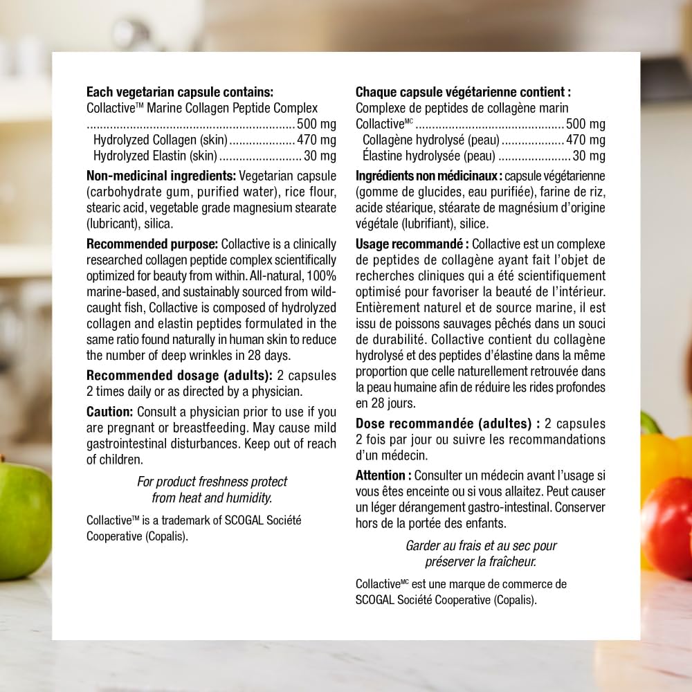 Webber Naturals Collagen30 海洋生物彈性蛋白勝肽,每粒含 500 毫克 Collactive 海洋膠原蛋白勝肽複合物,120 粒膠囊,有助於減少深層皺紋和關節疼痛