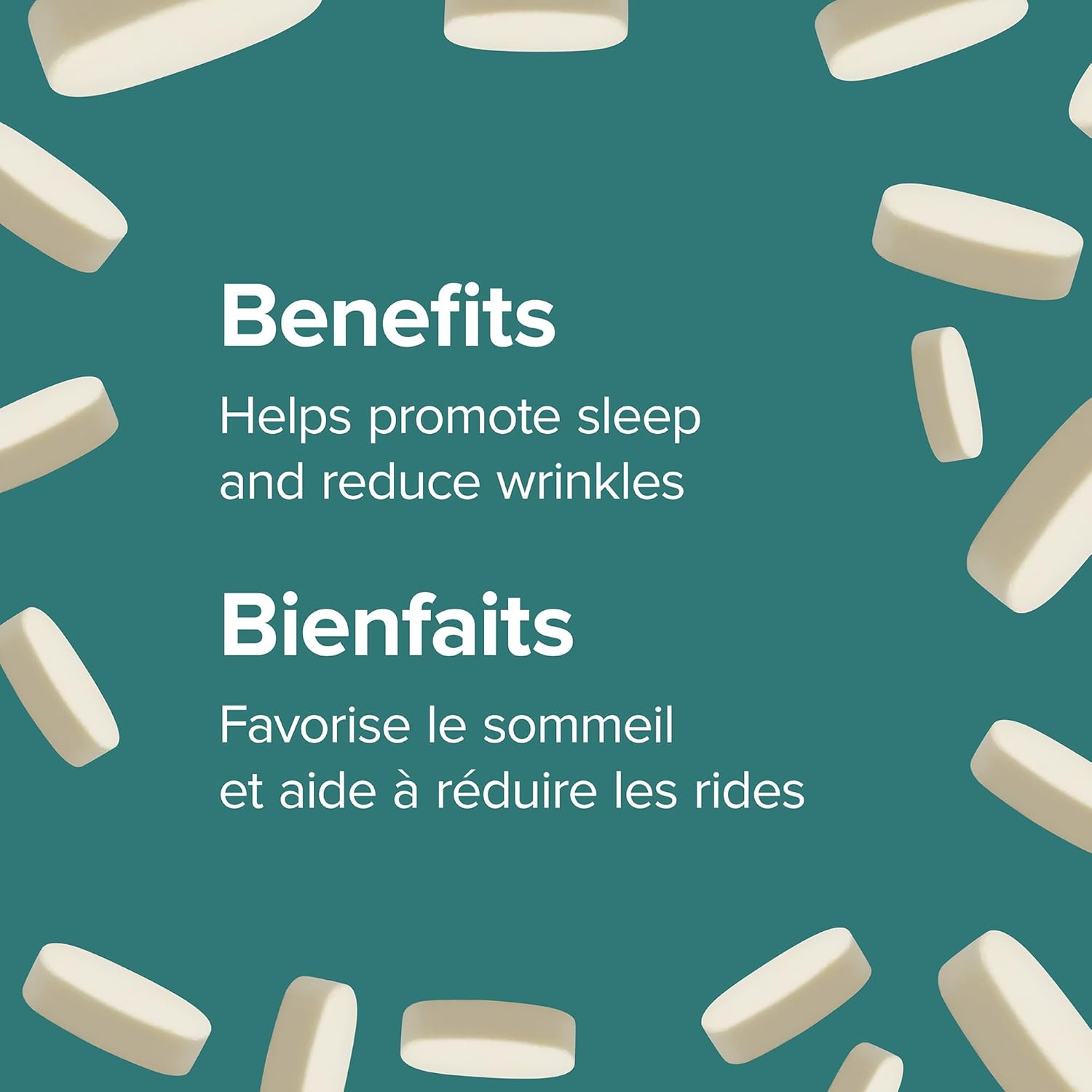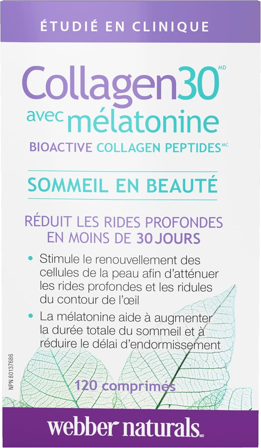 韋伯天然 (Webber Naturals) 的 Collagen30 褪黑素膠囊將生物活性膠原蛋白勝肽與褪黑素結合,有助於在睡眠期間促進健康的膠原蛋白生成。經臨床驗證,Collagen30 可在周圍幫助減少眼部皺紋,並提升肌膚彈性和密度。褪黑素是一種不易成癮的助眠劑。