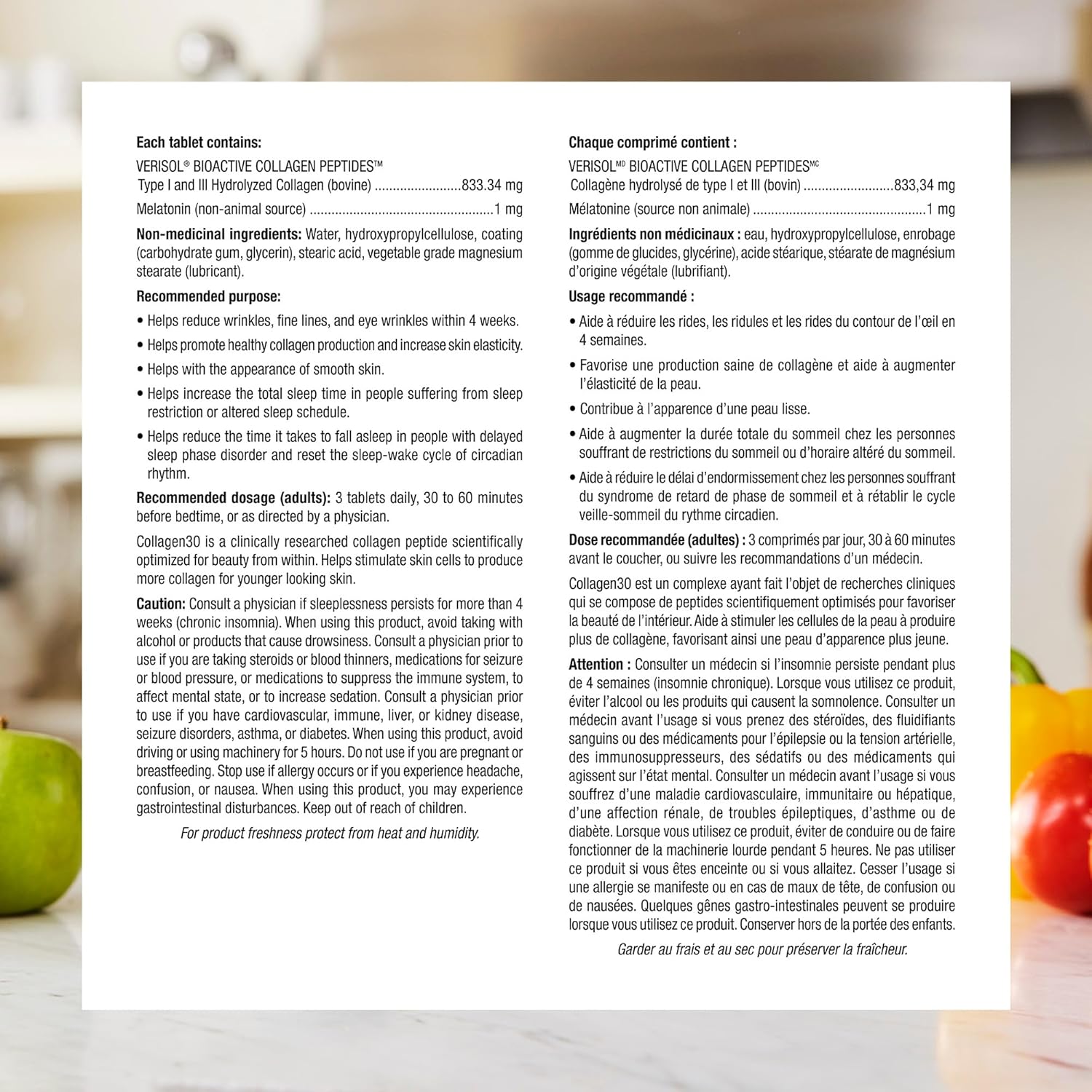 Webber Naturals Collagen30 含褪黑激素,每份含 2,500 毫克生物活性膠原蛋白勝肽和 3 毫克褪黑激素,120 片,有助於減少深層皺紋和細紋,促進睡眠