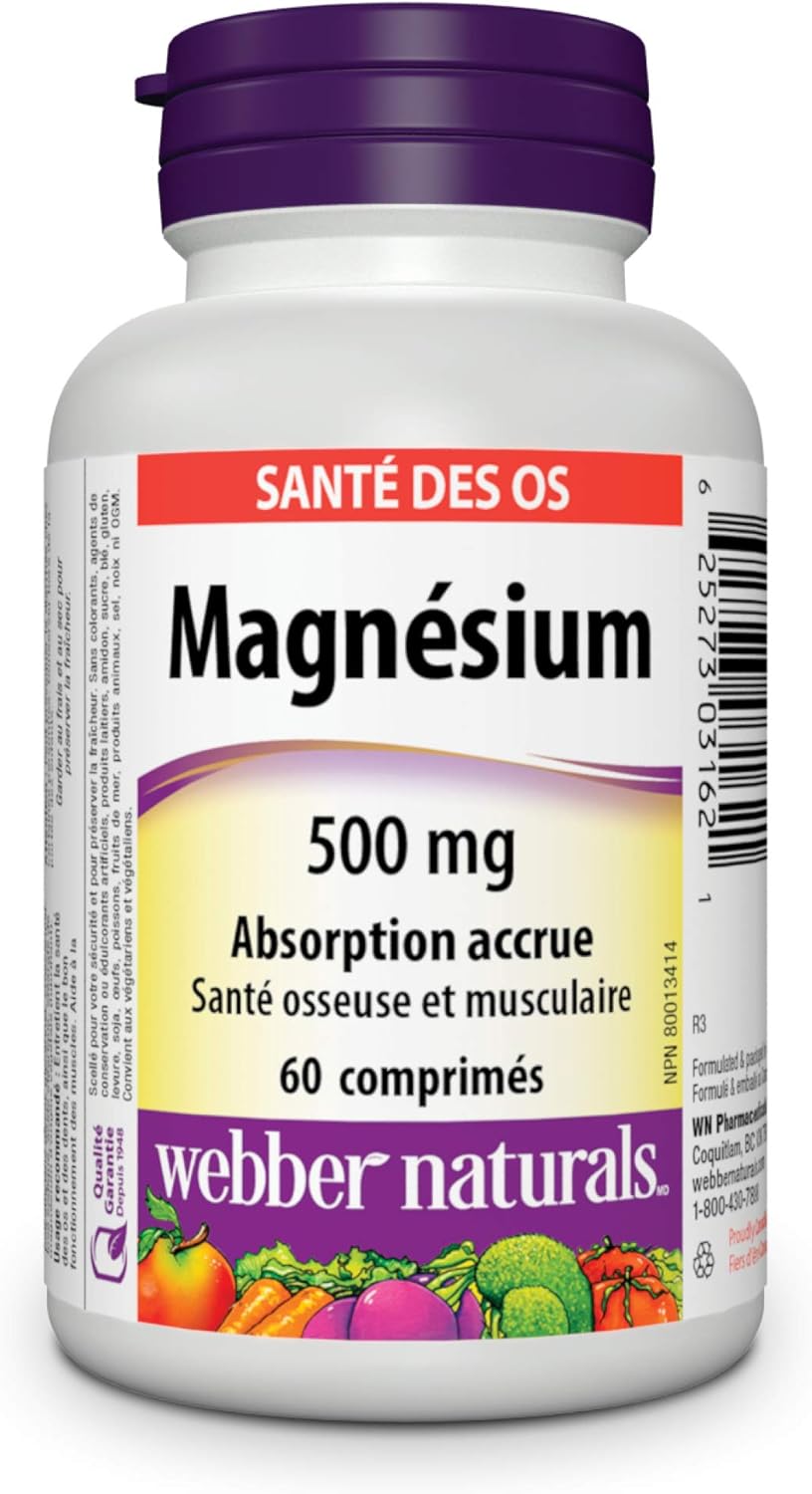 Webber Naturals 葡萄籽 100 毫克,強效,90 粒膠囊,抗氧化支持,純素。 Webber Naturals 的葡萄籽是一種強效標準化萃取物,提供名為原花青素的關鍵抗氧化劑。這些化合物有助於維持靜脈健康,並幫助身體抵抗自由基的損傷和老化作用。葡萄籽萃取物是一種成熟的草藥,有助於緩解非複雜性慢性靜脈功能不全 (CVI) 的症狀,例如疲勞、沉重、腫脹和腿部刺痛。 Webber Naturals 鎂 500 毫克,60 片,增強吸收礦物質,支持骨骼和肌肉功能,純素。 Webber Naturals 的鎂增強吸收片是我們功效最高的鎂補充劑,每片提供 500 毫克元素鎂。鎂有助於骨骼和牙齒的發育和維護。它還有助於組織形成和維持正常的肌肉功能。