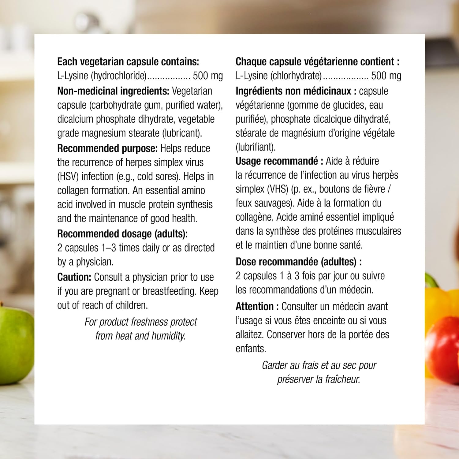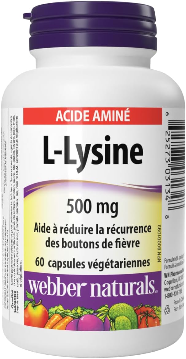Webber Naturals L-賴氨酸 500 毫克,60 粒膠囊,預防唇皰疹,純素