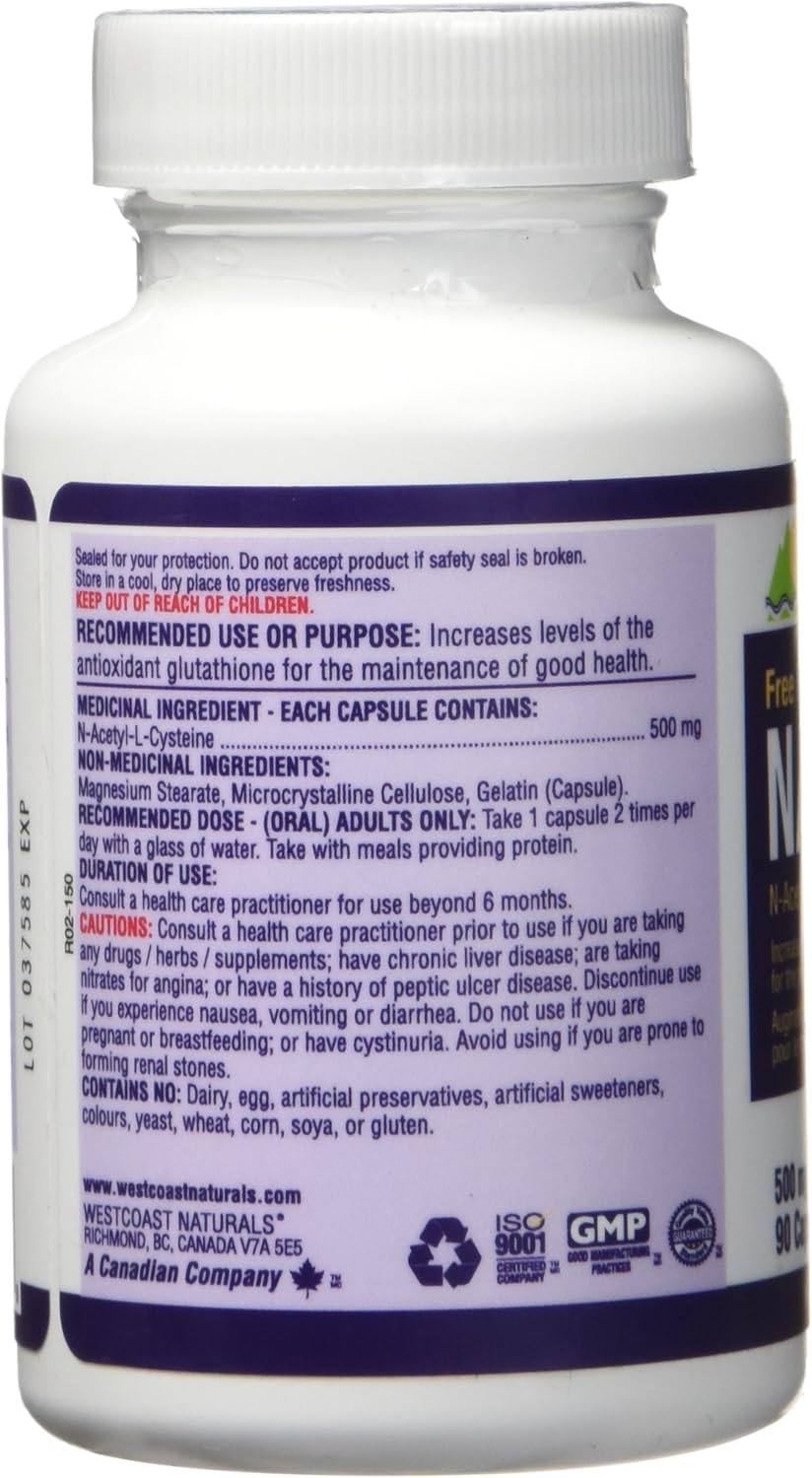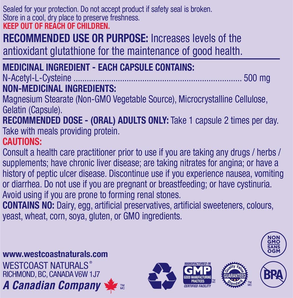 Westcoast Naturals 氨基酸 N-乙醯-L-半胱氨酸膠囊,500 毫克