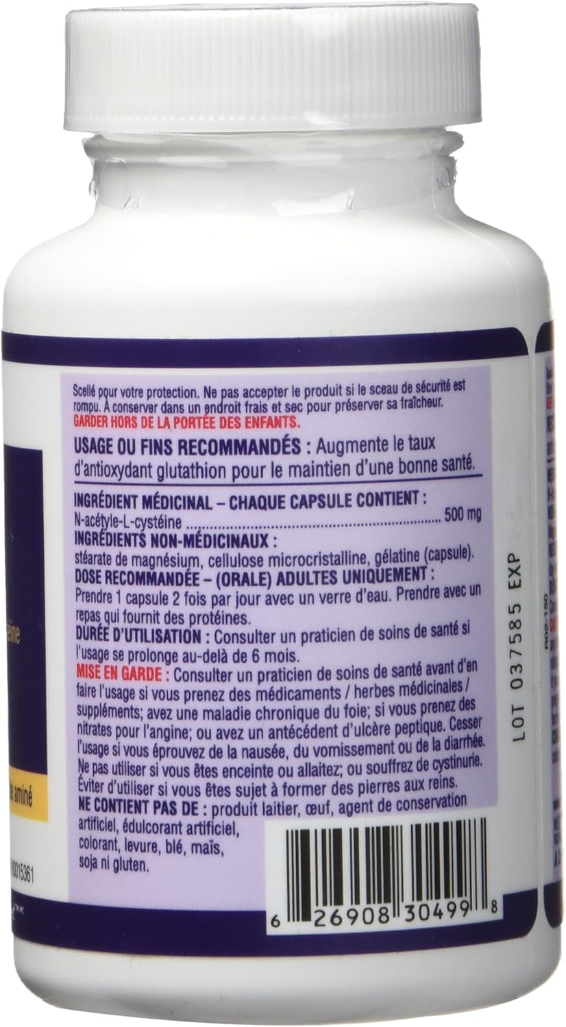 Westcoast Naturals 氨基酸 N-乙醯-L-半胱氨酸膠囊,500 毫克。提高抗氧化劑穀胱甘肽的水平,從而維持身體健康。 NAC 由氨基酸半胱氨酸在生物體內合成。因此,NAC 是一種天然含硫胺基酸衍生物,天然存在於食物中,是一種強大的抗氧化劑。這種雙重特性有助於修復體內的氧化傷害。 NAC 是一種強大的抗氧化劑和細胞解毒輔助因子,能夠清除體內的自由基和重金屬,從而顯著改善細胞健康。過敏資訊:不含人工防腐劑、甜味劑或色素,不含乳製品、大豆、玉米、酵母、雞蛋或小麥。