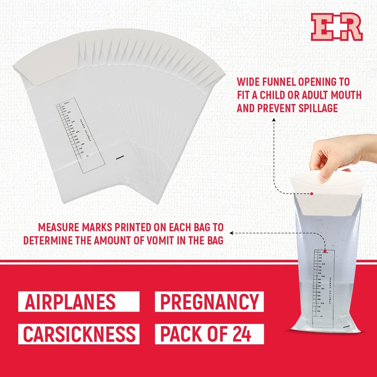 Ever Ready 急救嘔吐袋,附漏斗和防漏止回閥,適用於旅遊、計程車、暈車、孕婦、兒童等 - 24 個裝