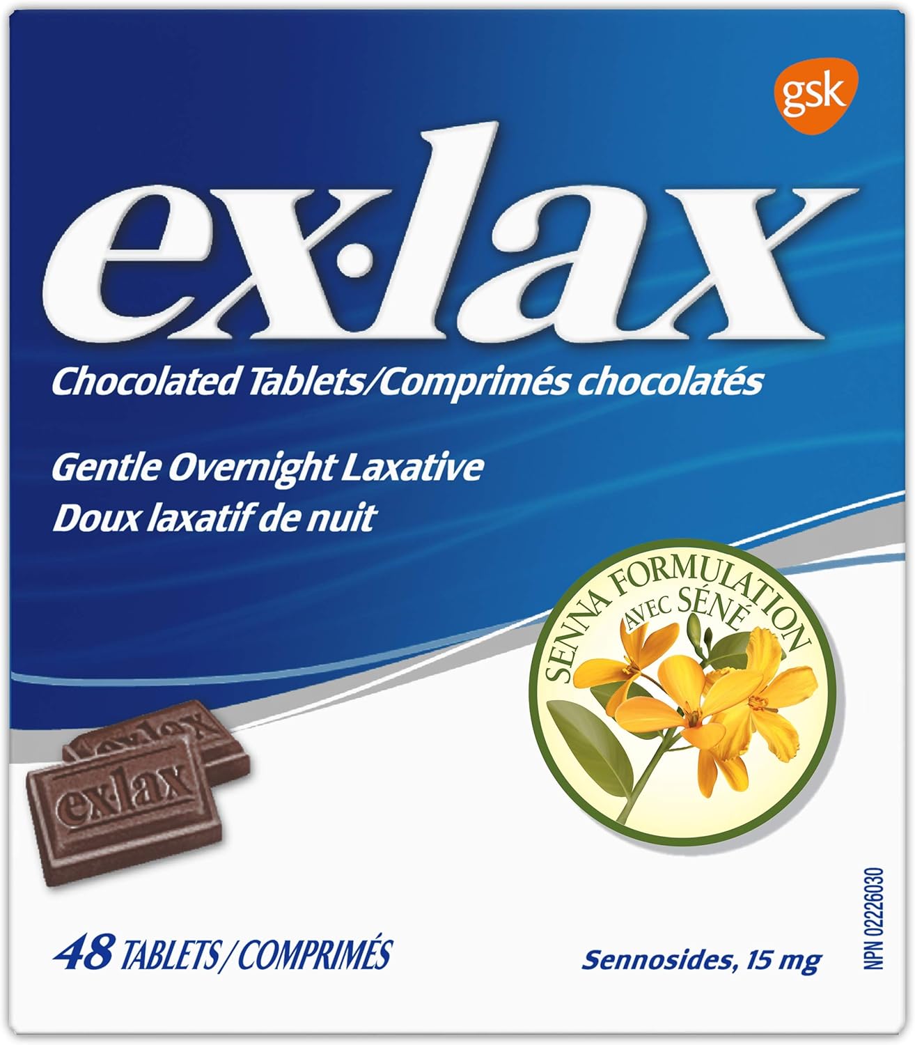 Ex-Lax 溫和隔夜瀉藥,緩解便秘,60 片巧克力片