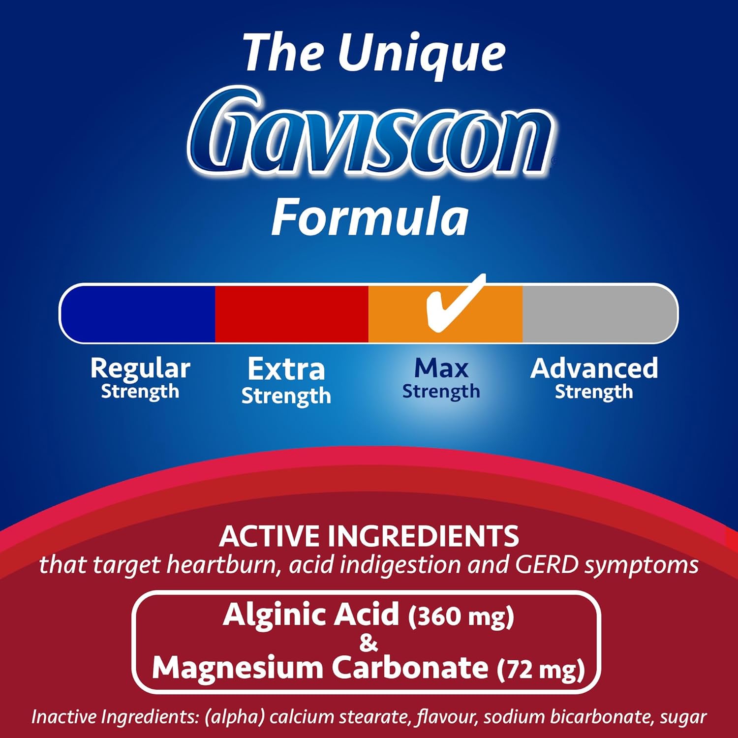 Gaviscon Max Relief 片劑 - 50 片 - 可咀嚼的泡沫抗酸片,用於日夜緩解胃灼熱、胃酸倒流和胃食道逆流症,莓果混合物 - 不含鋁、乳糖和麩質