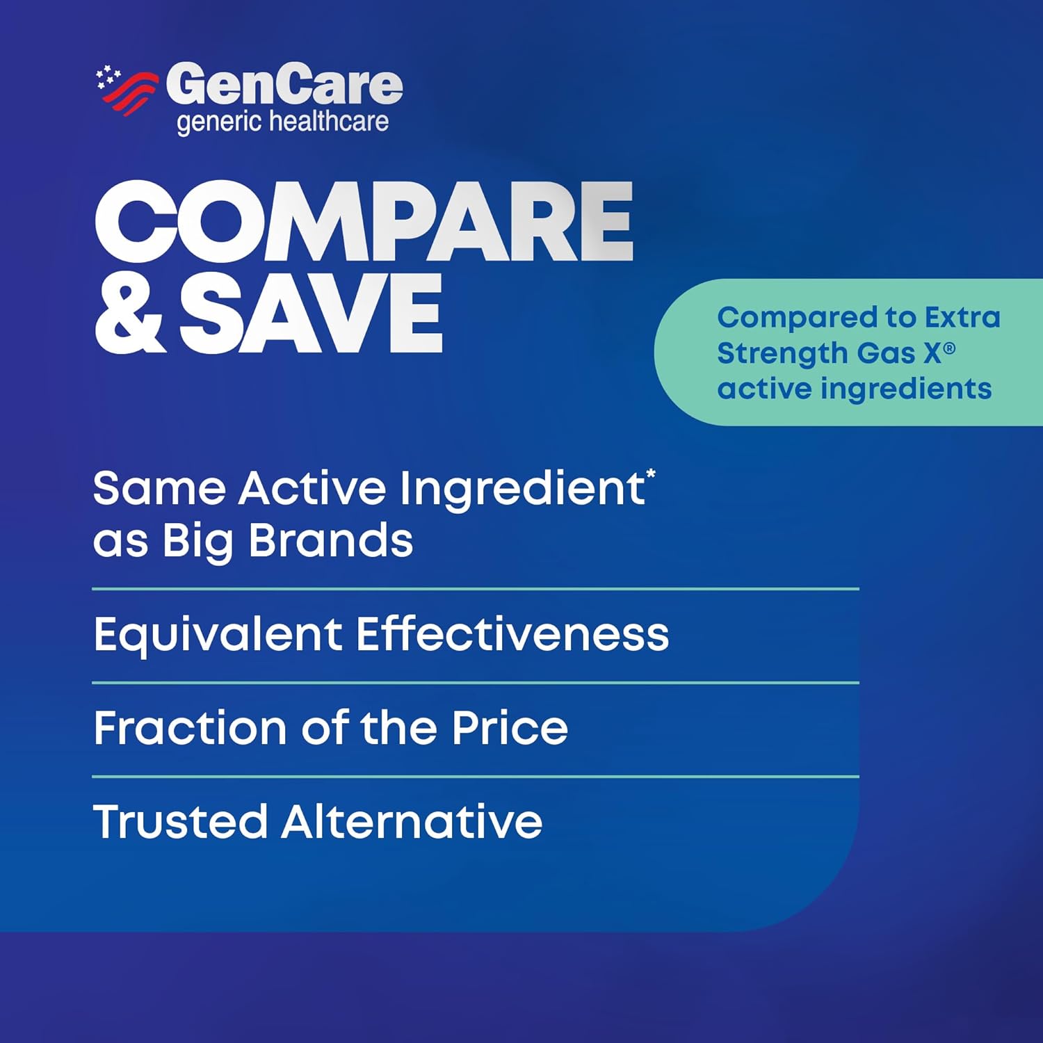 GenCare - 強效西甲矽油 125 毫克(180 粒軟膠囊)強效抗脹氣藥丸,可緩解腹脹、腹壓和不適 - 與通用強效脹氣藥 X 相比