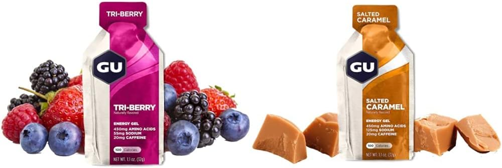 GU ENERGY 原廠運動營養能量凝膠,三種莓果口味(24 粒)+ 鹹焦糖口味(24 粒)