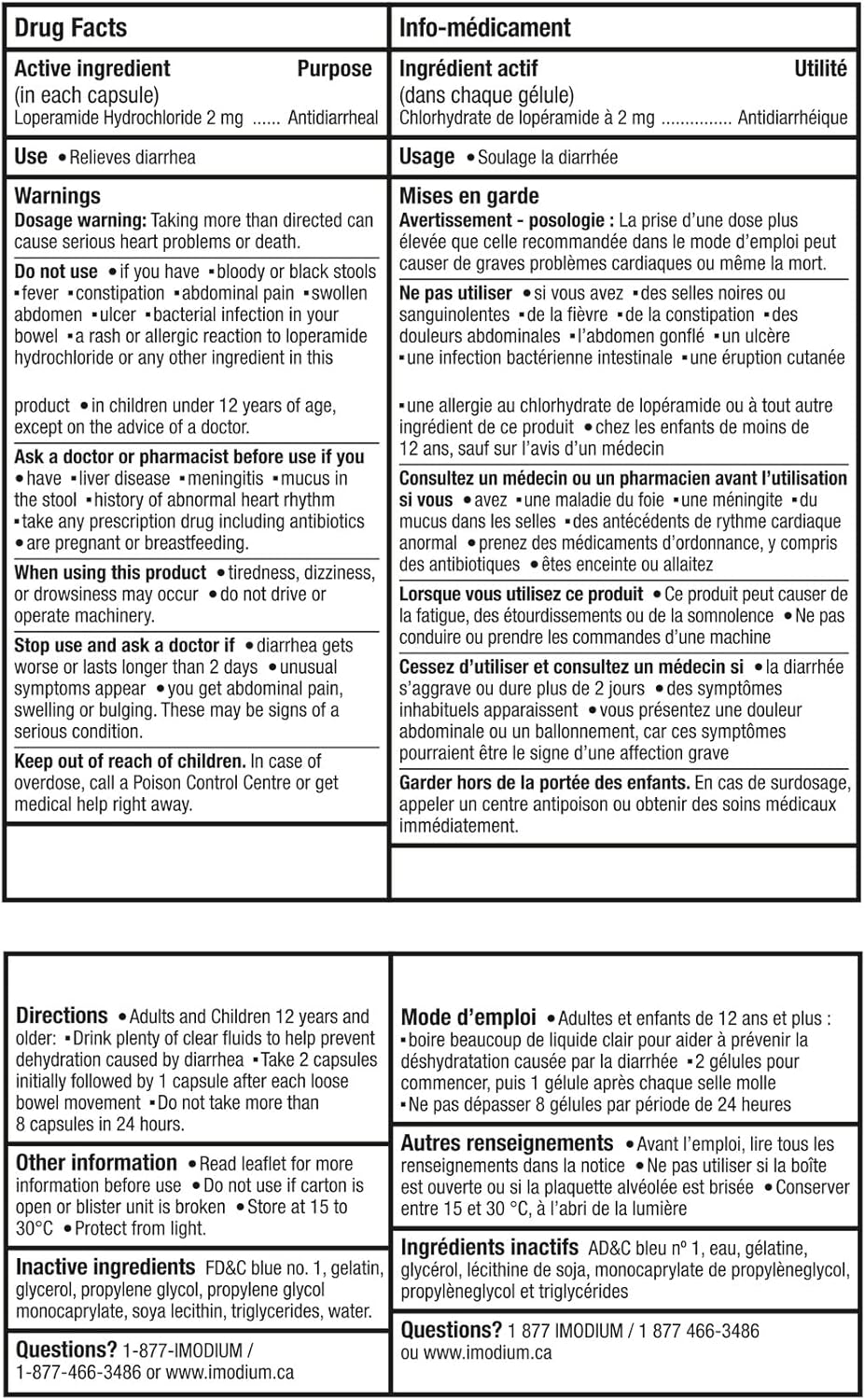 想要快速有效地緩解腹瀉,請使用易蒙停液體凝膠。每劑含2毫克鹽酸洛哌丁胺,這種溫和有效的藥物適用於所有腹瀉類型,包括旅行者腹瀉。液體凝膠通常只需一次服用即可緩解腹瀉,使腹瀉平復,恢復您的正常體力。臨床研究表明,50%的患者在首次服藥後即可控制腹瀉。液體凝膠小膠囊易於吞嚥。本產品適用於成人(12歲以上)。服用方法:初始服用兩粒膠囊,之後每次稀便後服用一粒。每日服用量不得超過八粒。使用前請閱讀說明書以了解更多資訊。正確使用方法:易蒙停應口服。您可以在一天中的任何時間服用易蒙停。液體凝膠膠囊應與液體一起送服。腹瀉時,您會流失大量水分。因此,請多喝清澈的液體、水、不加糖的果汁或清湯。不要喝酒或牛奶,也不要吃水果、綠色蔬菜以及辛辣或油膩的食物。這些食物往往會加重腹瀉。