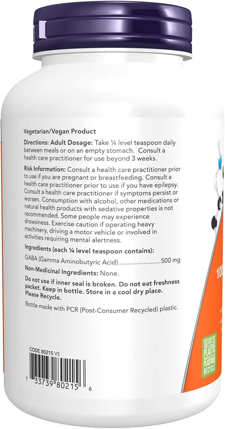 GABA(γ-氨基丁酸)是一種非蛋白質氨基酸,在人類大腦中扮演神經傳導物質的角色。 GABA被稱為大腦本身的鎮靜劑,人體自然產生。透過維持自然平衡的大腦刺激水平,GABA在中樞神經系統中的存在有助於促進放鬆和緩解神經緊張。 NOW僅提供天然存在於食物和人體的L型GABA。這種粉狀產品易於控制劑量。我們的NOW天然有機補充劑是確保您和您的家人獲得每日最佳健康所需的必需維生素、礦物質和營養素的有效方法。自2000年以來,NOW品牌一直致力於支持加拿大人,其使命是提供能夠幫助人們過更健康生活的產品。加拿大70%的NOW產品在安大略省圭爾夫市生產或包裝,為加拿大東海岸至西海岸的數百名員工提供了就業機會。 NOW 每月進行 31,000 次品質檢測,確保您以最優惠的價格獲得最高品質的補充劑。我們承諾:標籤上的內容與瓶中內容完全一致。