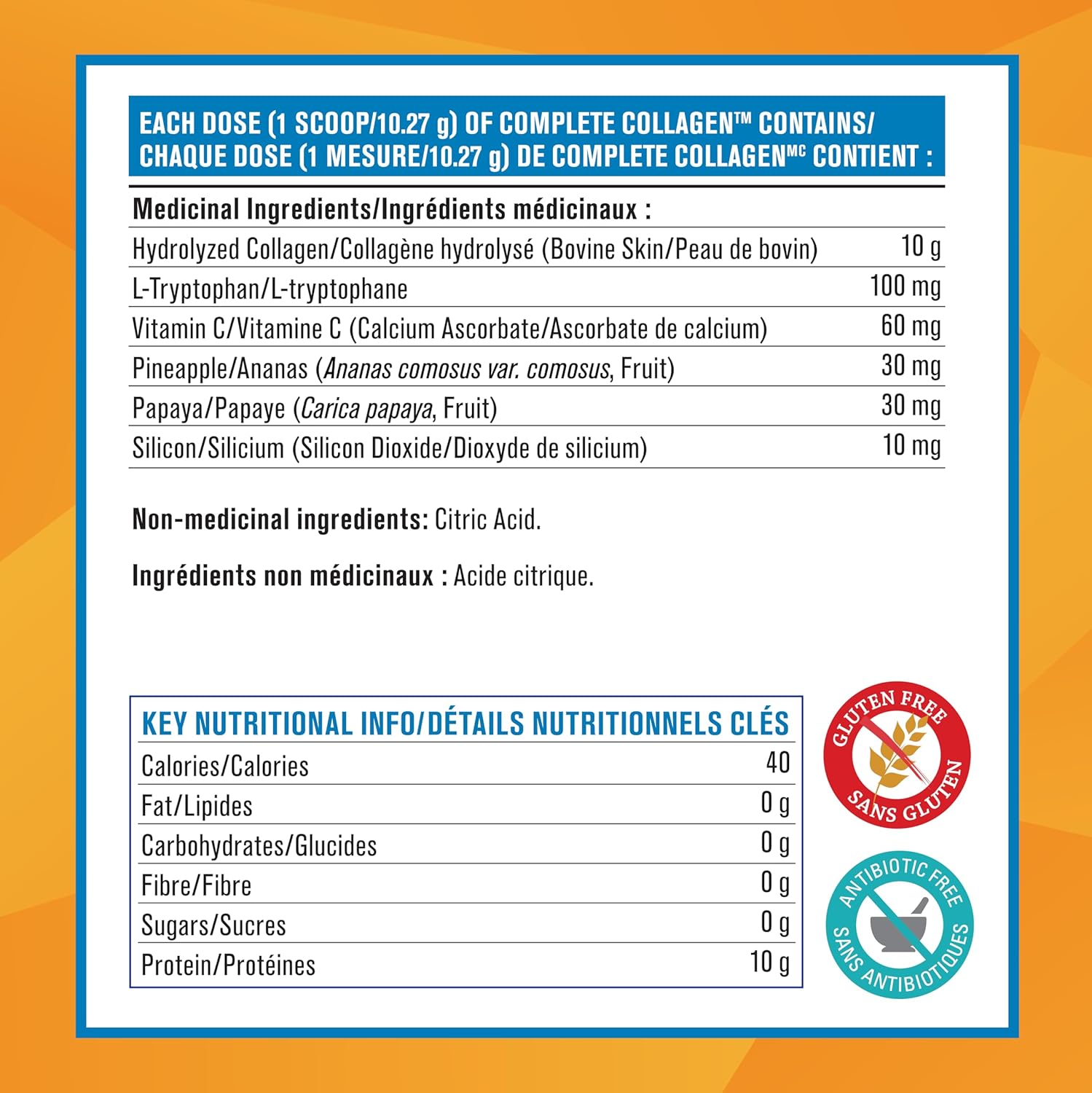 Progressive Complete Collagen 有助於維持骨骼、軟骨和結締組織的強壯。每匙含有 10 克膠原蛋白,並添加維生素 C 和色氨酸,確保膠原蛋白有效利用。服用膠原蛋白的其他益處包括促進頭髮、皮膚和指甲的健康。