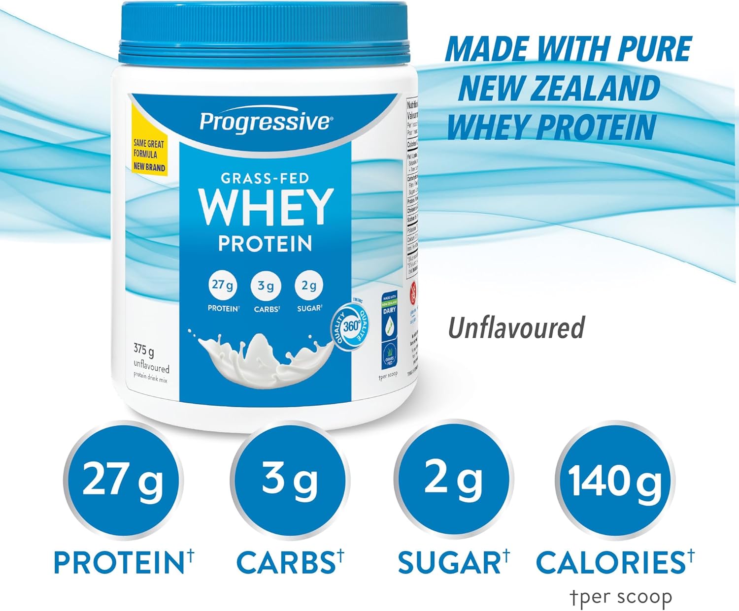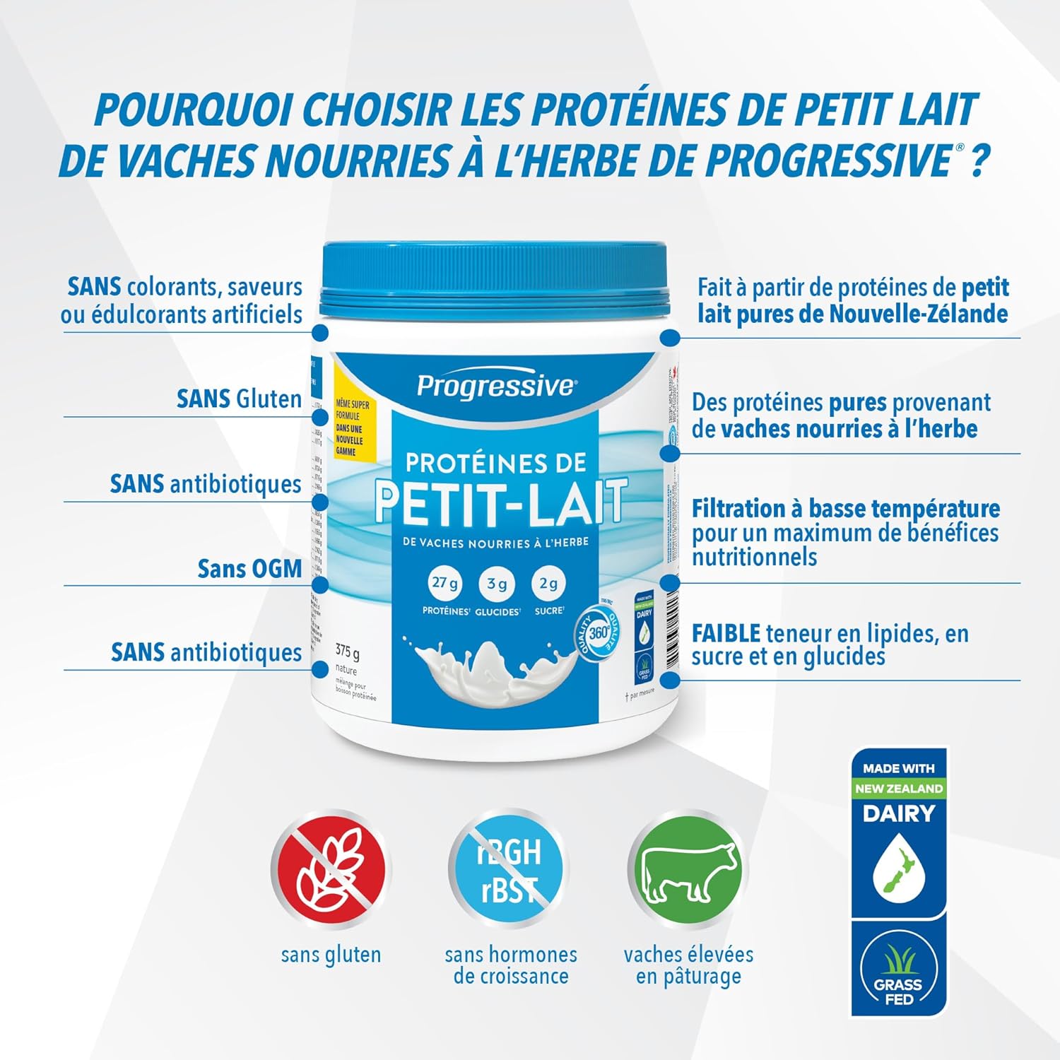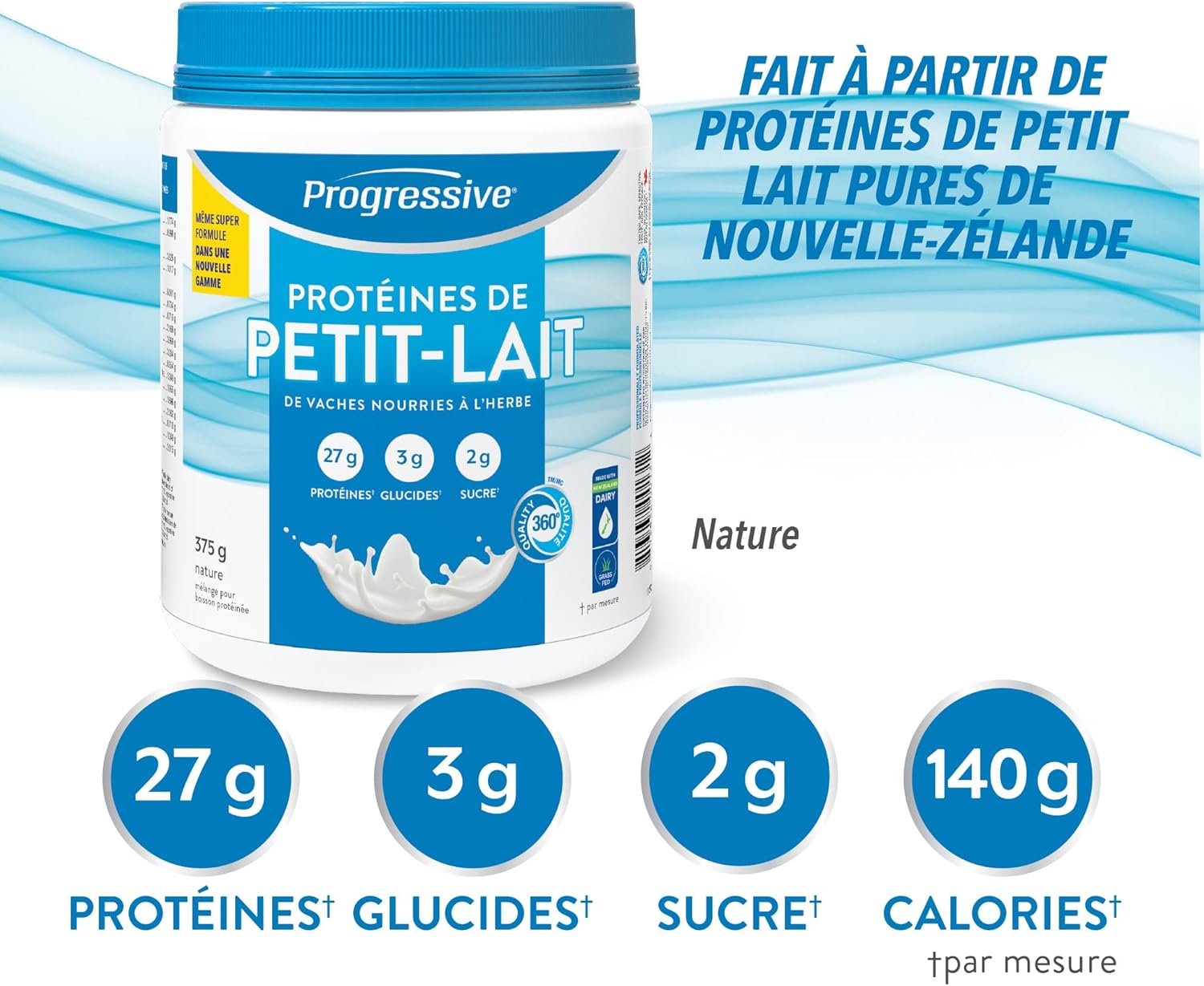 Progressive 草飼 100% 乳清蛋白粉(無味),每匙含 27 克紐西蘭乳清濃縮物,用於增肌,牧場飼養,非基因改造,加拿大製造,不含抗生素和激素,375 克