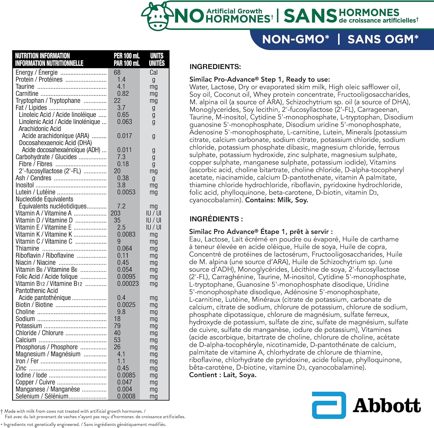 Similac Pro-Advance 1 段嬰兒配方奶粉,我們最接近母乳的配方,含 2’-FL,易於消化,0 個月以上,即食,16 x 235 毫升