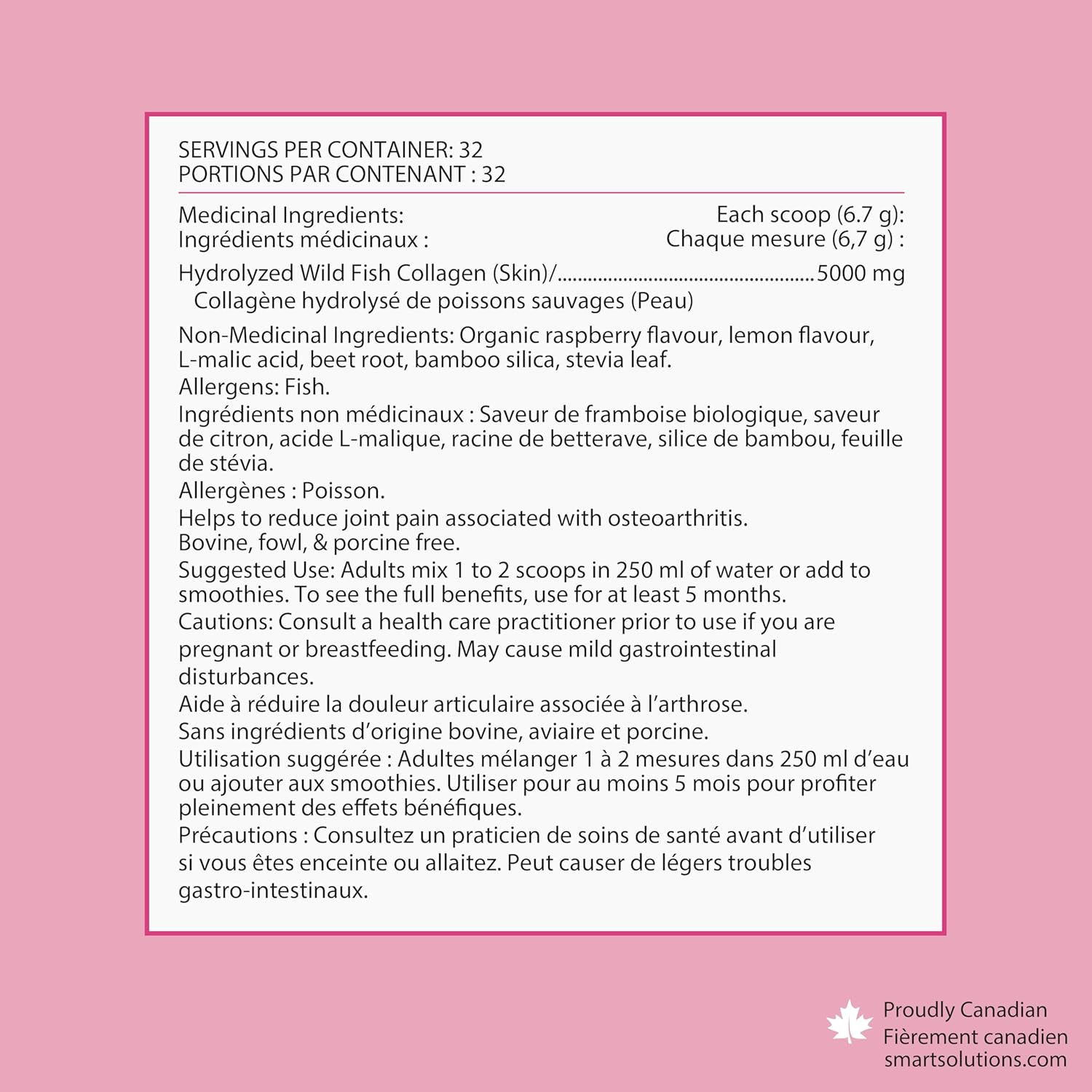 Smart Solutions 活性膠原蛋白粉,有機覆盆子口味,含水解野生魚膠原蛋白,支持健康的頭髮、皮膚、指甲和關節,220 克