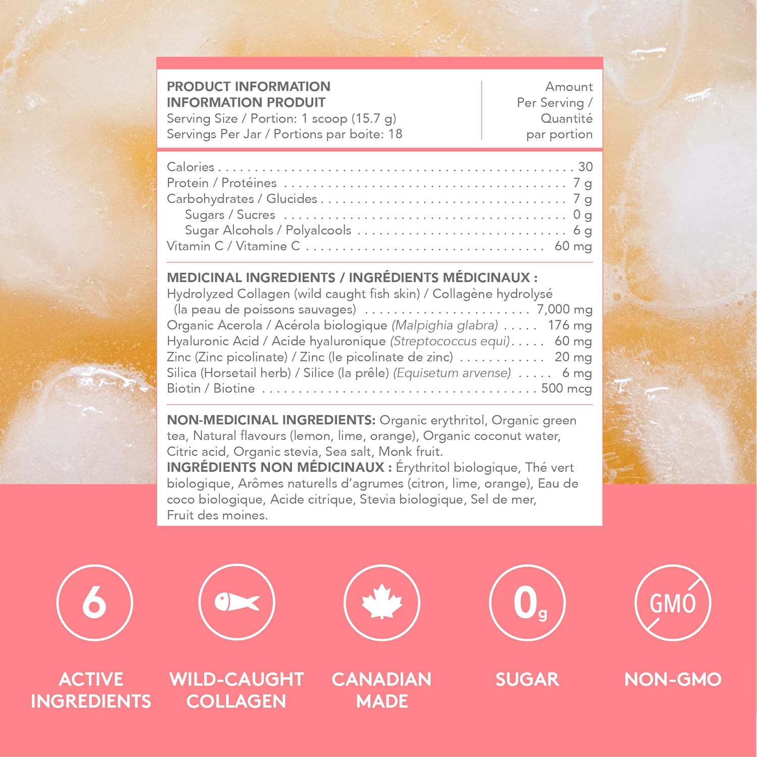 Sproos Beauty 膠原蛋白 | 水解膠原蛋白粉 + 生物素、透明質酸、鋅 | 增強型膠原蛋白肽粉,柑橘綠茶口味,桶裝,283 克