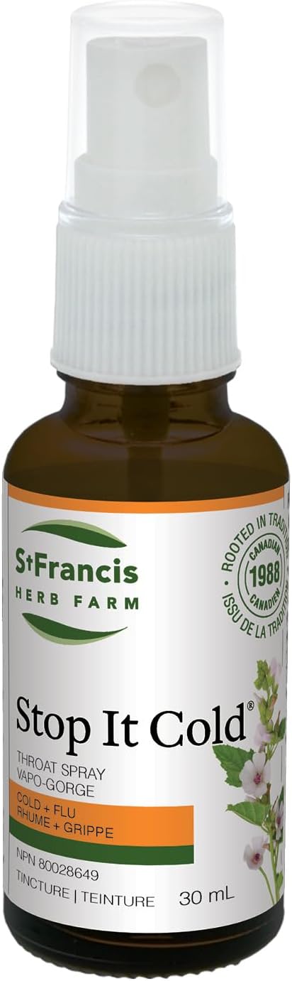 聖法蘭西斯草藥農場 Stop It Cold® 喉嚨噴霧 (30ml) 緩解喉嚨痛、感冒和流感症狀 (1 瓶) 素食、有機、野生草藥,加拿大製造,1988 年