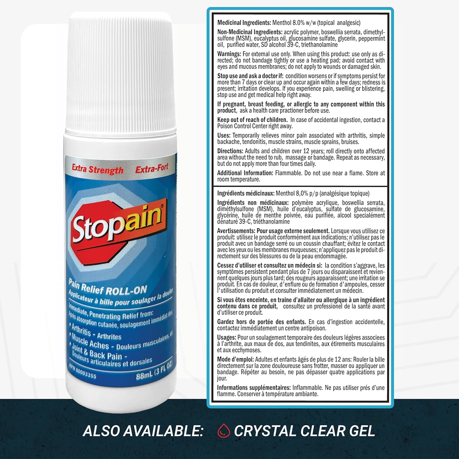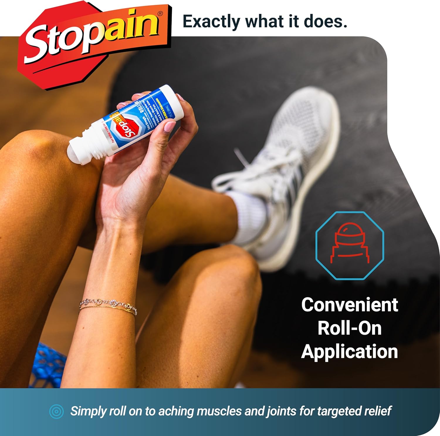 Stopain 強效止痛滾珠,快速緩解關節炎、肌肉酸痛、關節痛和背痛,不油膩,3 液體盎司(包裝可能有所不同)