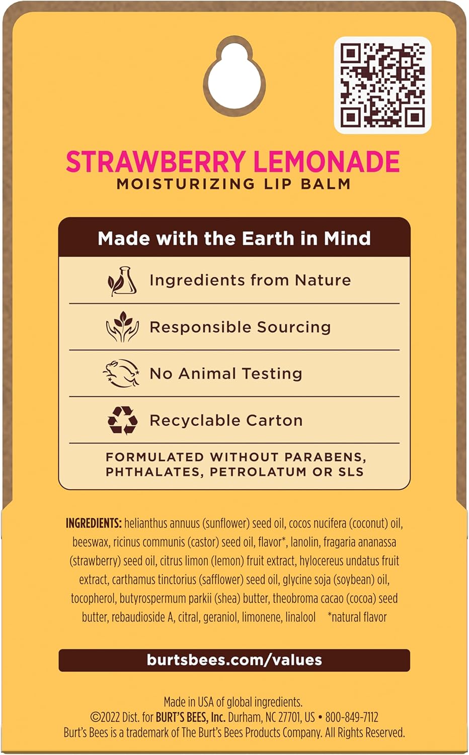 Burts Bees 草莓檸檬水保濕唇膏組(男女通用)- 2 x 0.15 盎司潤唇膏