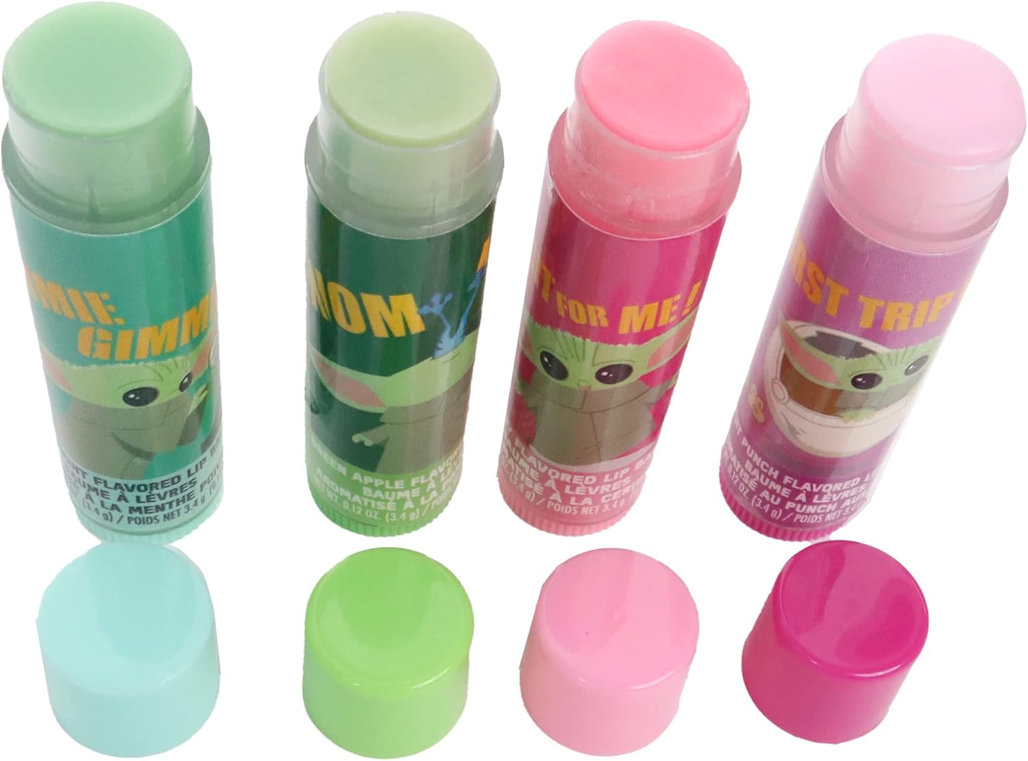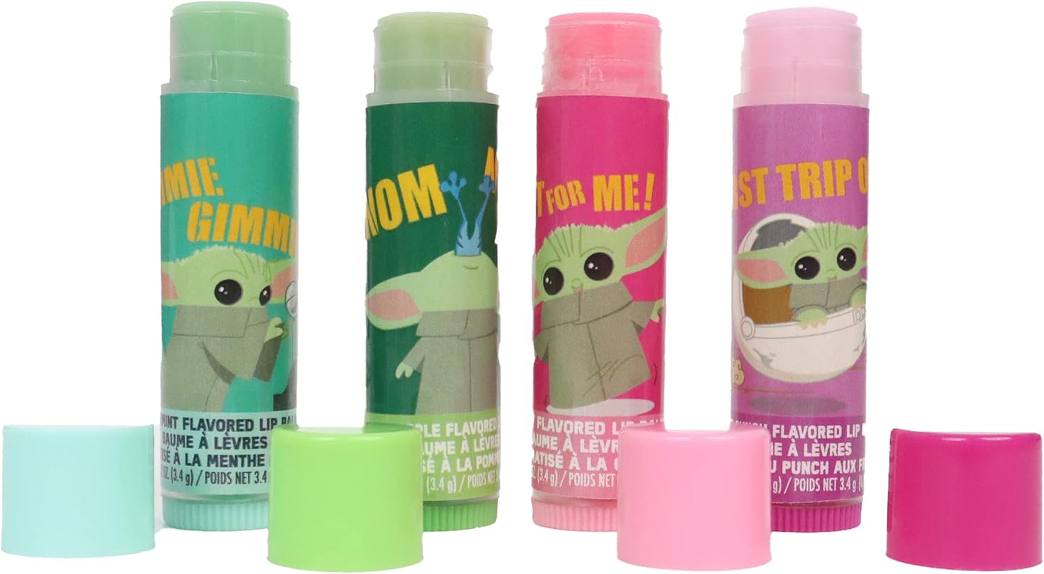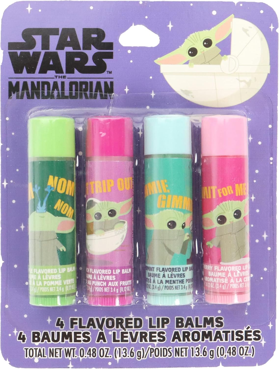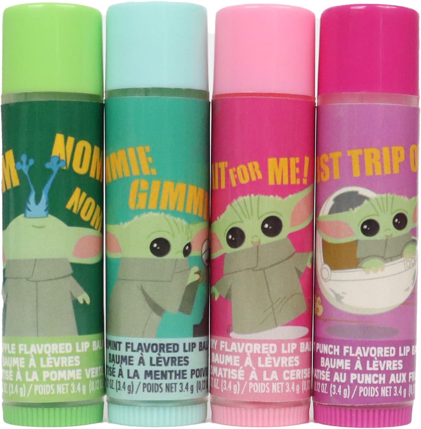 這款可愛又色彩繽紛的套裝包含4支印有熱門美劇《曼達洛人》中「孩子」圖案的唇膏。每支唇膏都有不同的香味,而且味道很甜。