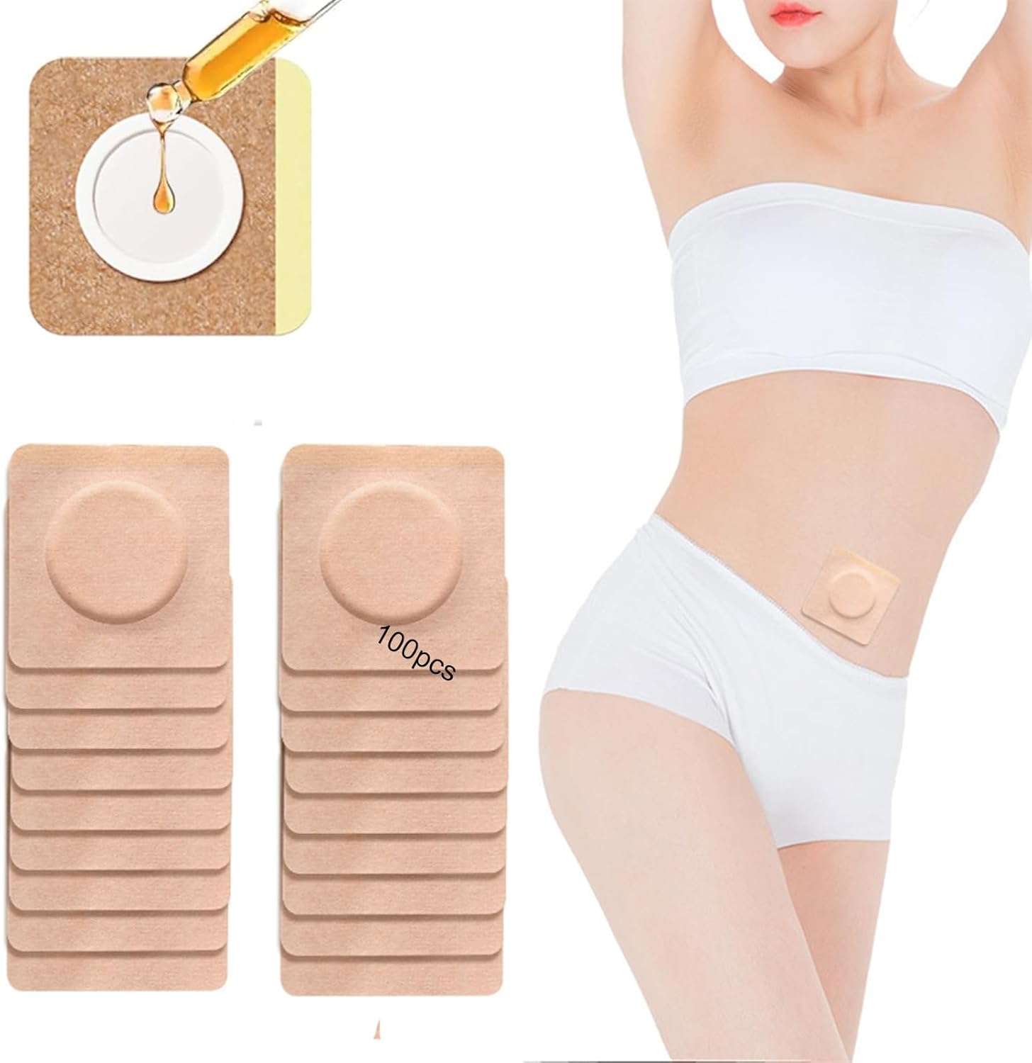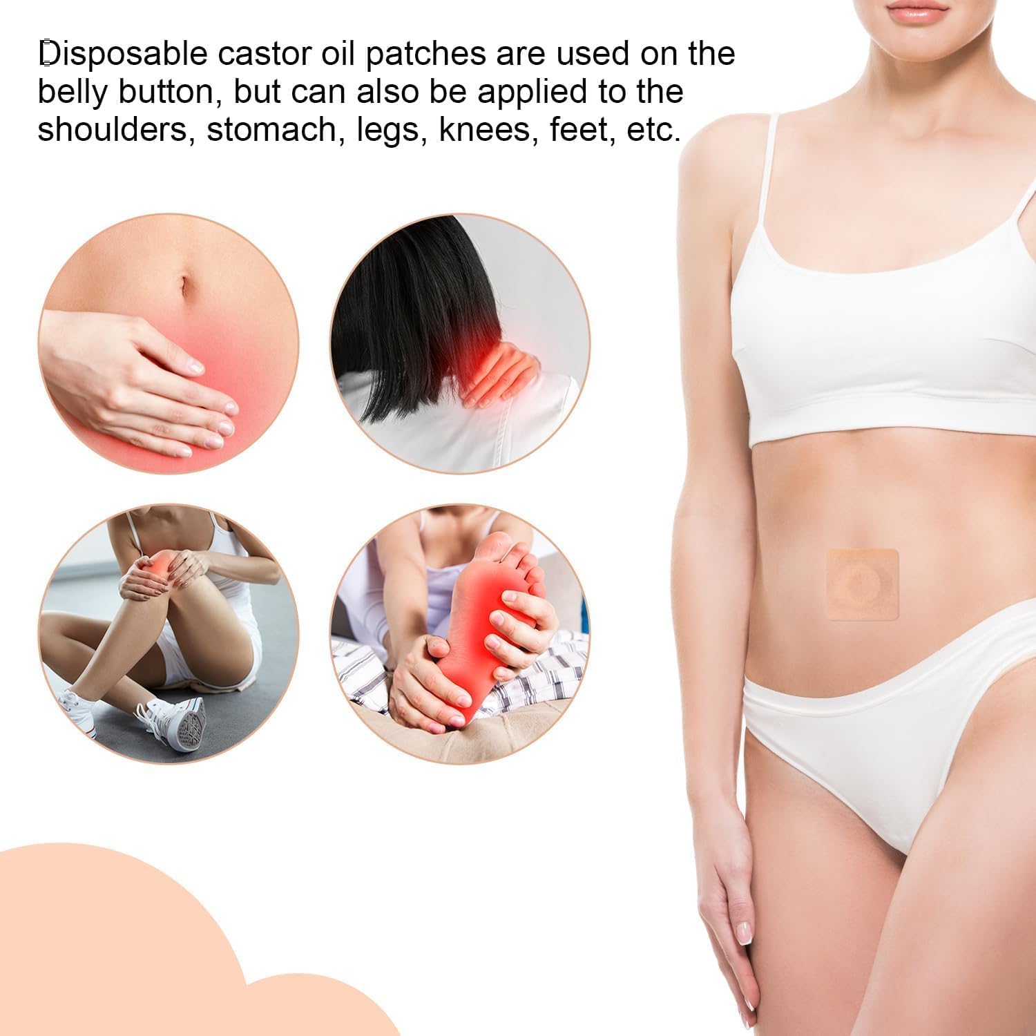TIAMORK 100 片 2 吋蓖麻油包敷貼,適用於肚臍,棉質自黏蓖麻油包敷貼,高吸收性防漏,便攜,易於使用