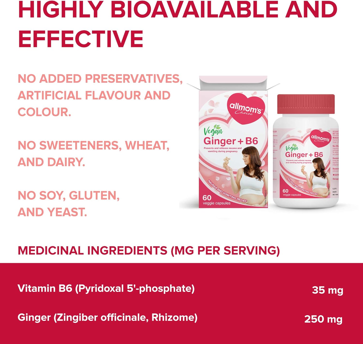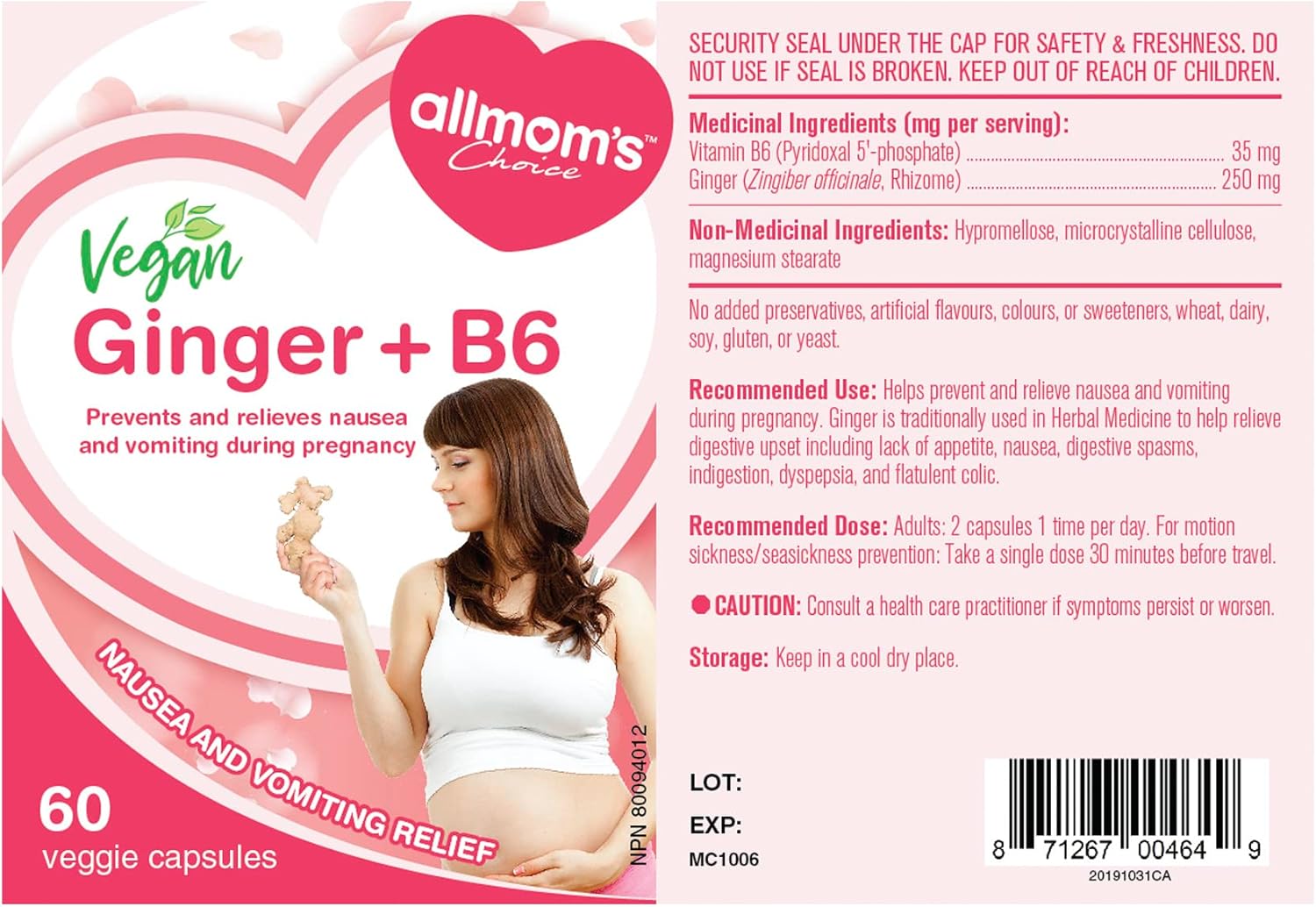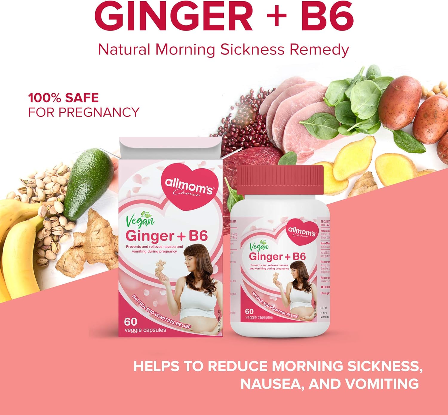 純素薑 + B6(60 粒膠囊),天然療法,可預防和緩解噁心和孕吐,減少胃灼熱,增進食慾,Allmom’s Choice 懷孕止吐產品