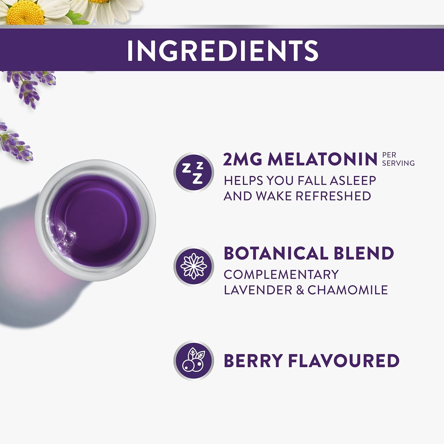ZzzQuil PURE Zzzs 液體褪黑素有助於維持您身體的睡眠週期。如果您偶爾失眠,不妨嘗試褪黑素。 ZzzQuil PURE Zzzs 液體褪黑素有助於您入睡,醒來後神清氣爽。這款褪黑素液體還含有洋甘菊和薰衣草的互補配方。 ZzzQuil PURE Zzzs 液體褪黑素由世界睡眠輔助品牌維克斯 (Vicks) 值得信賴的專家研發。資料來源:歐睿國際有限公司;消費者健康 2024 年版;睡眠輔助產品,所有通路,零售價,全球品牌名稱 ZzzQuil 2023 年數據。