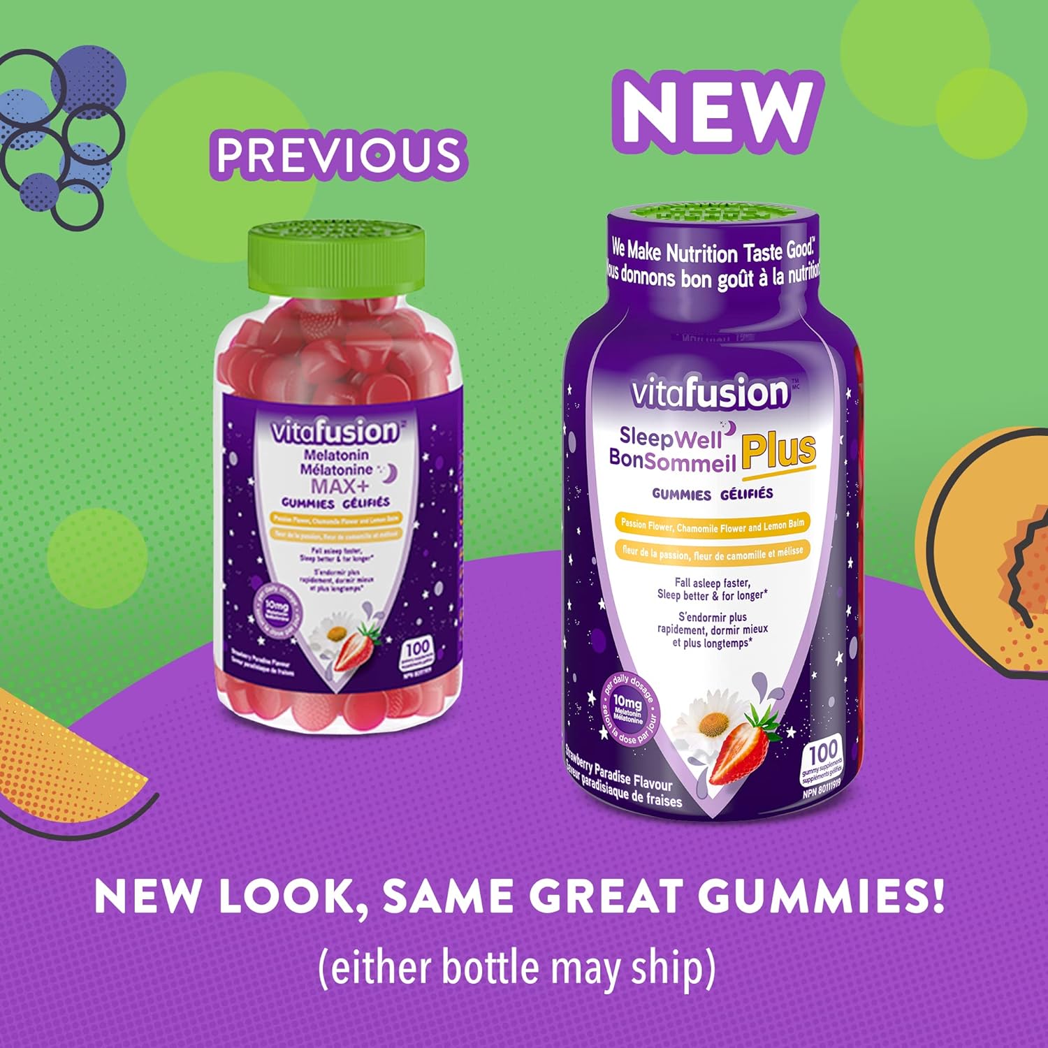 醒來後,服用 vitafusion Max Strength Melatonin Max+ 軟糖補充劑,準備好迎接新的一天。這是一款美味的軟糖,採用天然草莓天堂口味製成,可幫助您更快入睡、睡得更好、睡得更久*。每兩粒軟糖有助於睡眠,並有助於減輕時差的影響。它經過特殊配方,每份可提供 10 毫克褪黑激素。您不會得到:無麩質、無乳製品、無合成 (FD&C) 色素、無人工香料和無高果糖玉米糖漿。在 vitafusion,我們相信味道和營養可以融合在一起,提供最佳的維生素體驗,確保它成為您一天中輕鬆美味的一部分。我們透過軟糖維生素和補充劑幫助人們過著幸福健康的生活。當良好的營養成為您的基礎時,一切皆有可能。與 vitafusion 一起邁向更健康、更快樂的生活,碩果累累。維生素更好! *幫助入睡緩慢或患有睡眠相位後移症的人加快/縮短入睡時間。幫助睡眠不足或睡眠時間改變的人增加總睡眠時間。