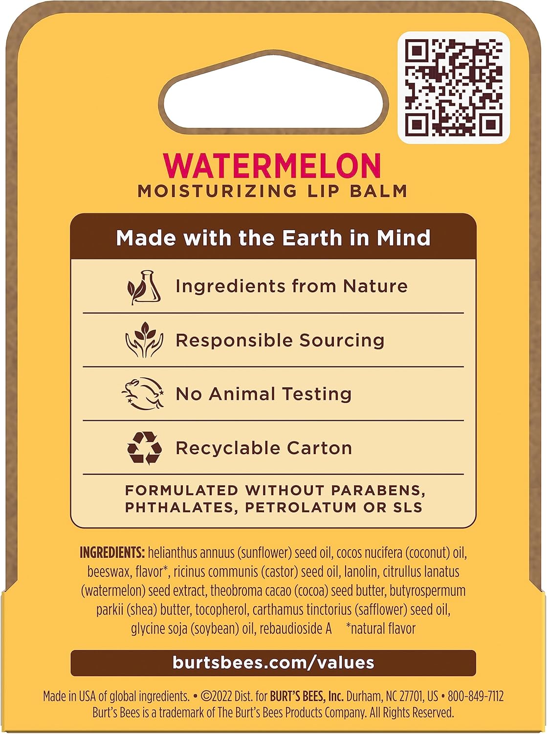 Burts Bees 西瓜保濕唇膏,男女通用 - 0.15 盎司