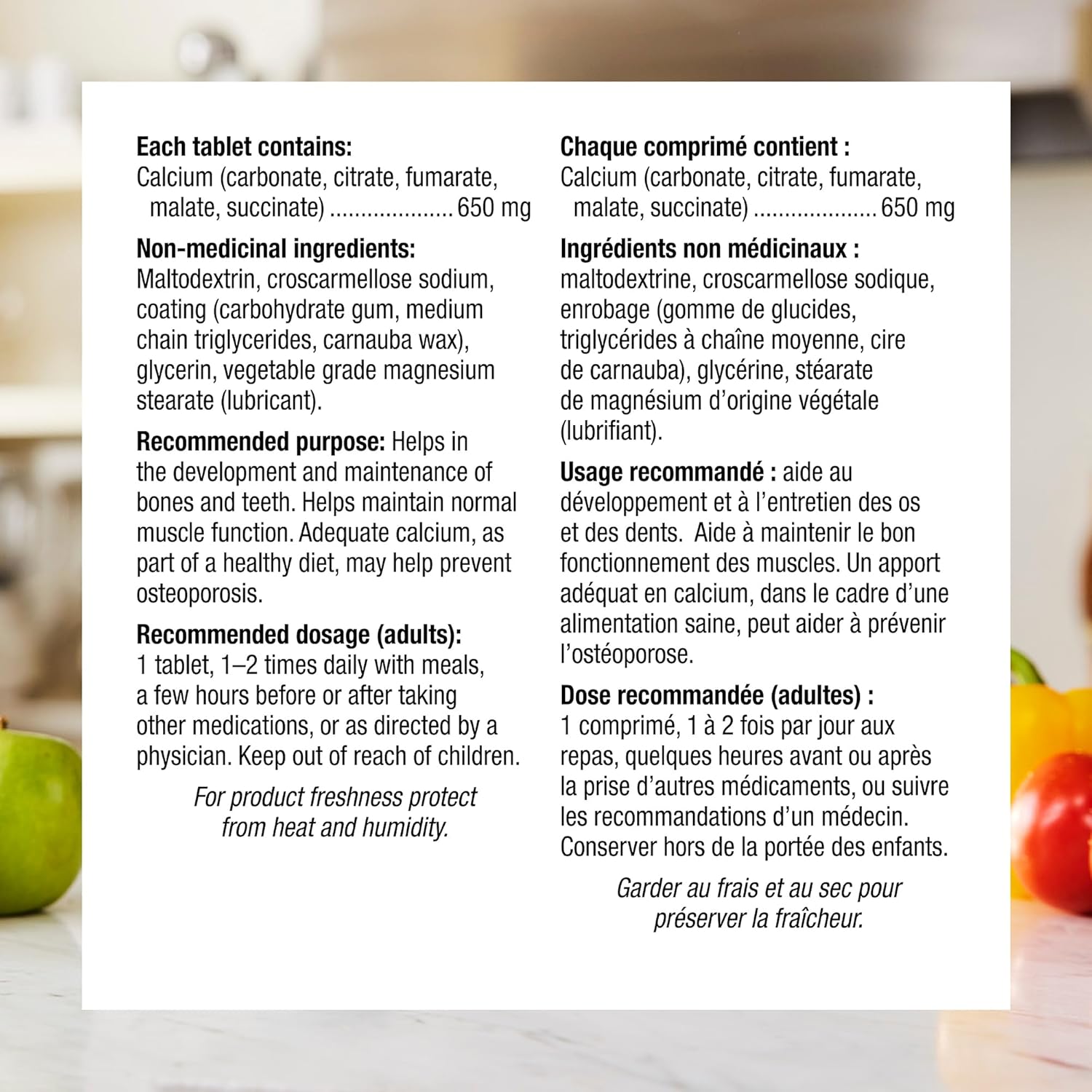 韋伯天然公司出品的650毫克超級鈣片,以螯合形式提供每日所需的這種必需礦物質,以增強吸收。螯合鈣是三羧酸循環的一部分,更容易被人體吸收和利用。每天服用一到兩片,有助於強健骨骼和牙齒,並結合充足的維生素D、健康飲食和規律運動,可以降低骨質疏鬆症的風險。