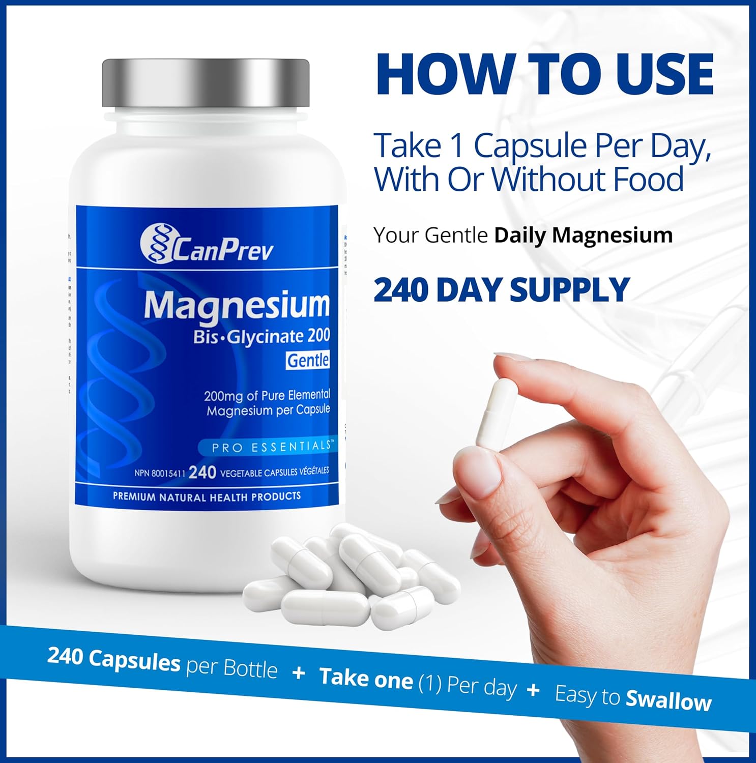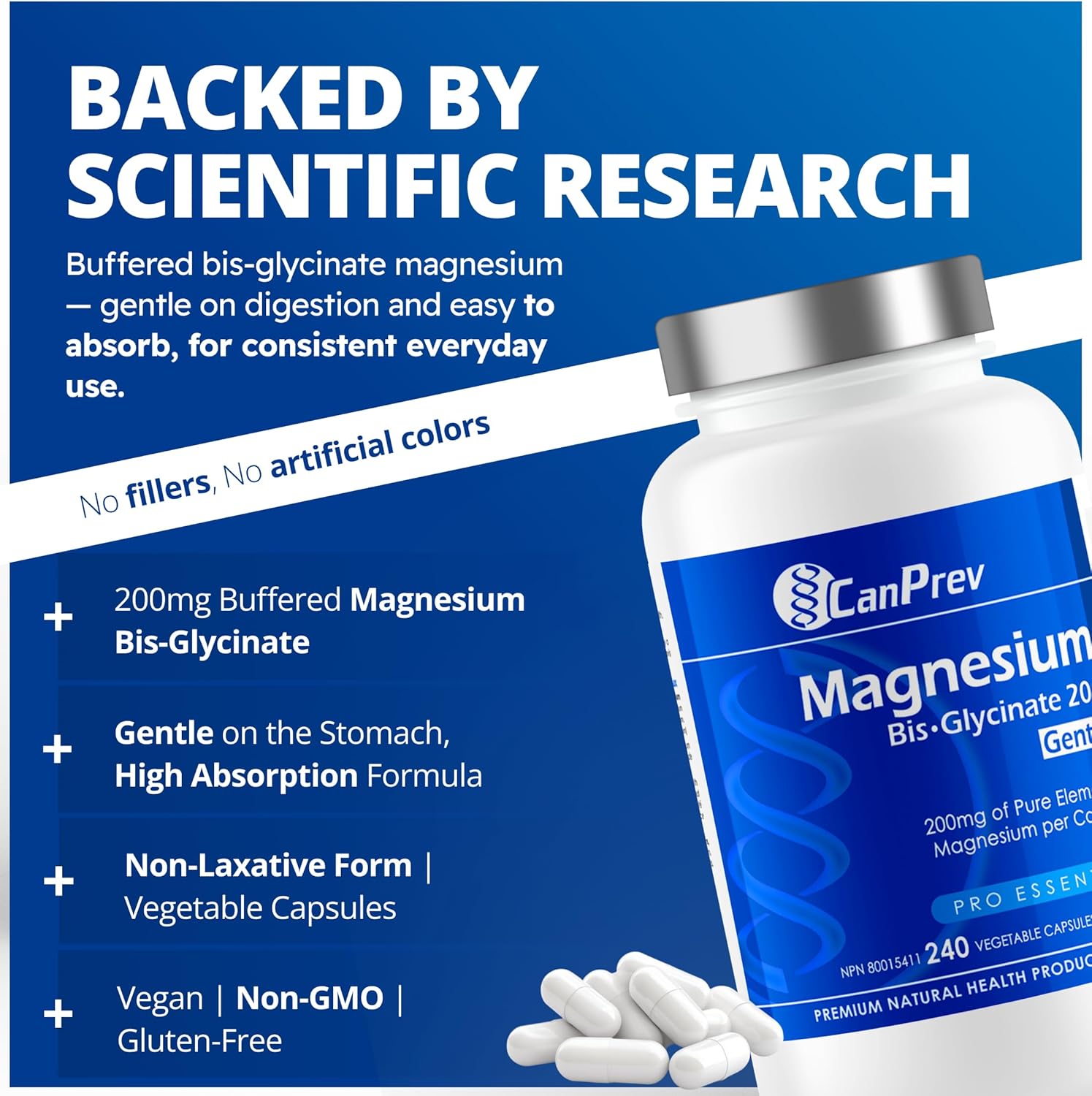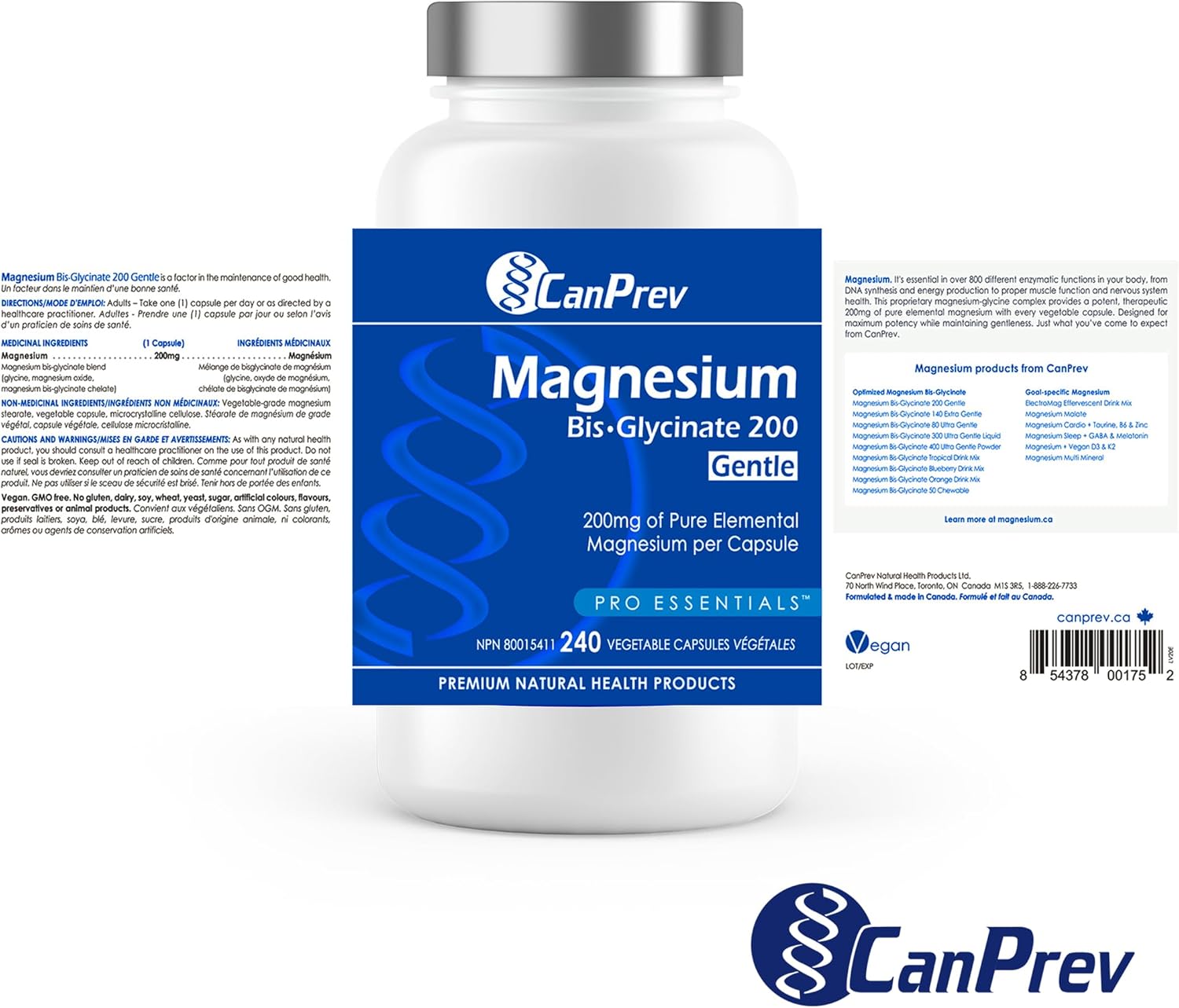 CanPrev 純雙甘氨酸鎂 200 毫克,240 粒素食膠囊,240 天供應量 - 溫和呵護胃部 - 雙甘氨酸鎂補充劑 - 元素螯合複合物,有助於放鬆和肌肉舒適