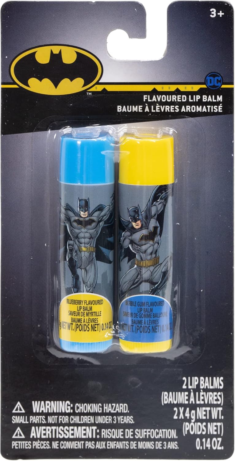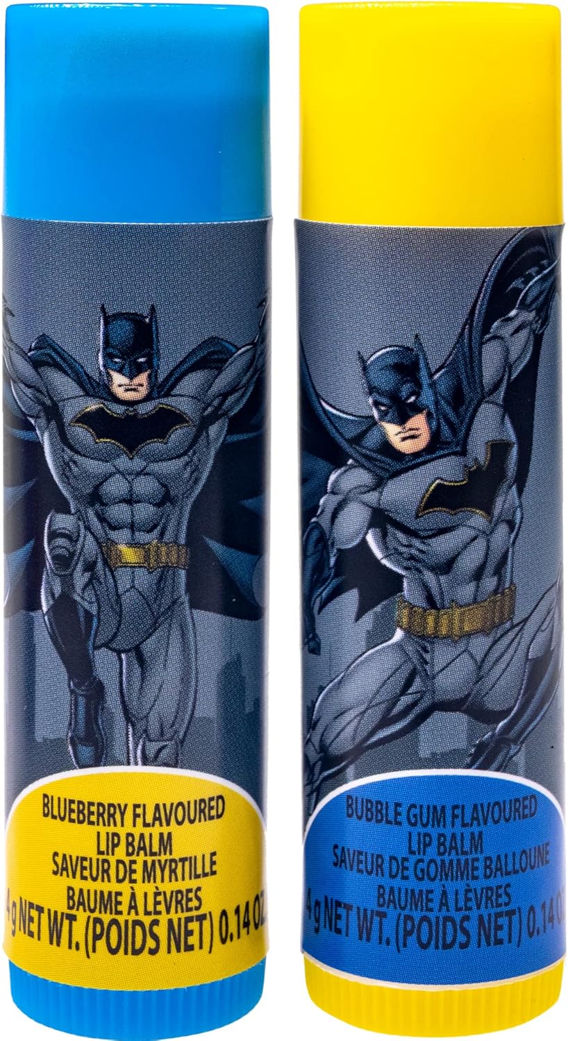 DC Comics – Townley Girl 2 件組無毒可水洗蝙蝠俠印花口味潤唇膏套裝,適合 3 歲以上兒童、青少年女孩,非常適合派對、過夜和化妝