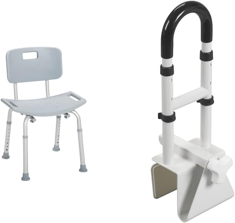 Drive Medical Designer系列豪華附靠背浴凳,灰色 | 可調節高度浴缸扶手安全欄桿