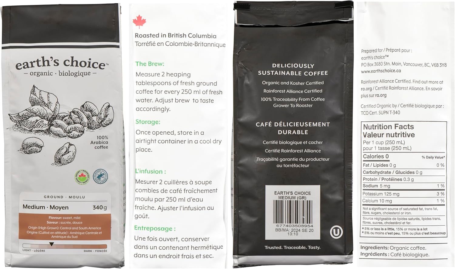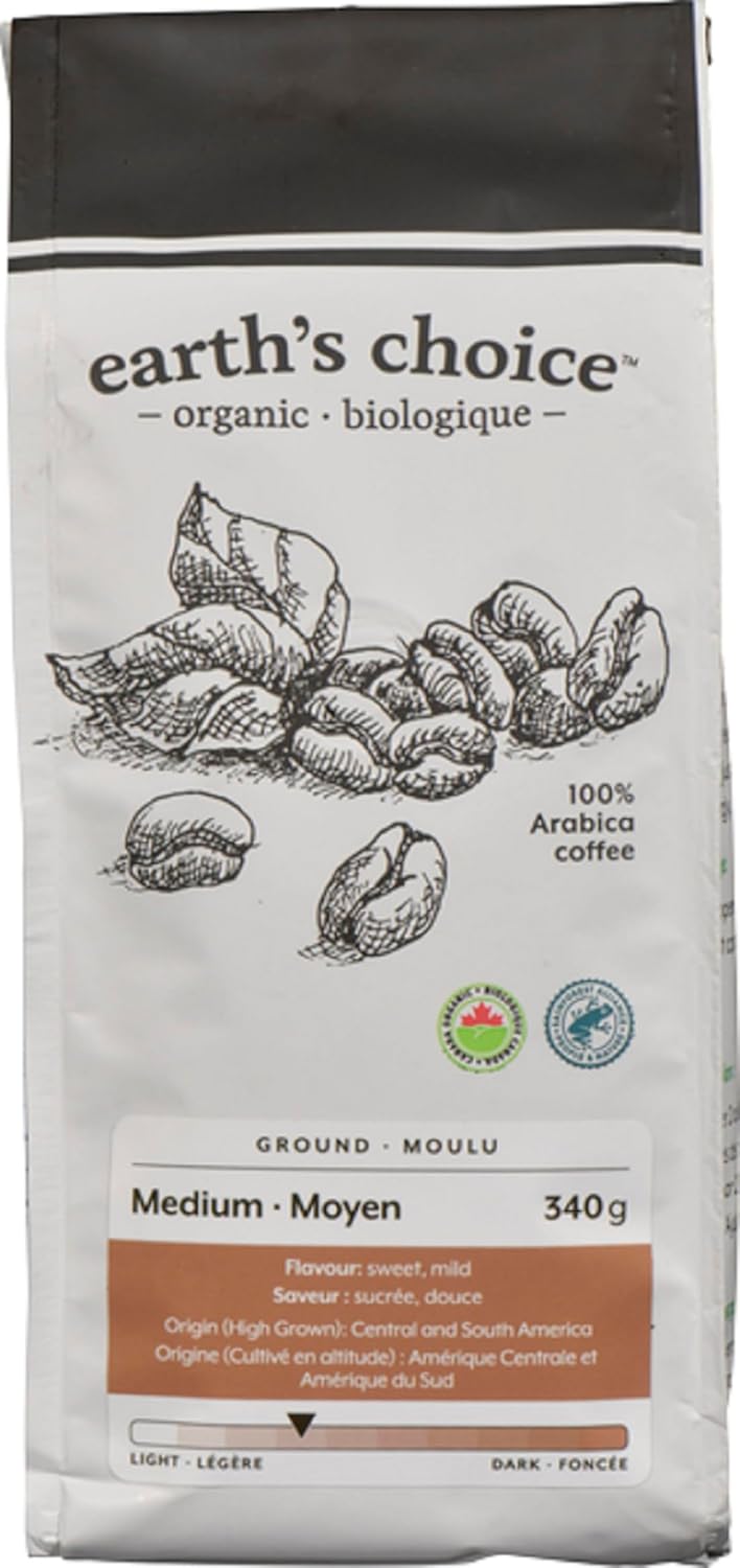 Earth's Choice 有機咖啡,中等研磨,可生物降解包裝,340克