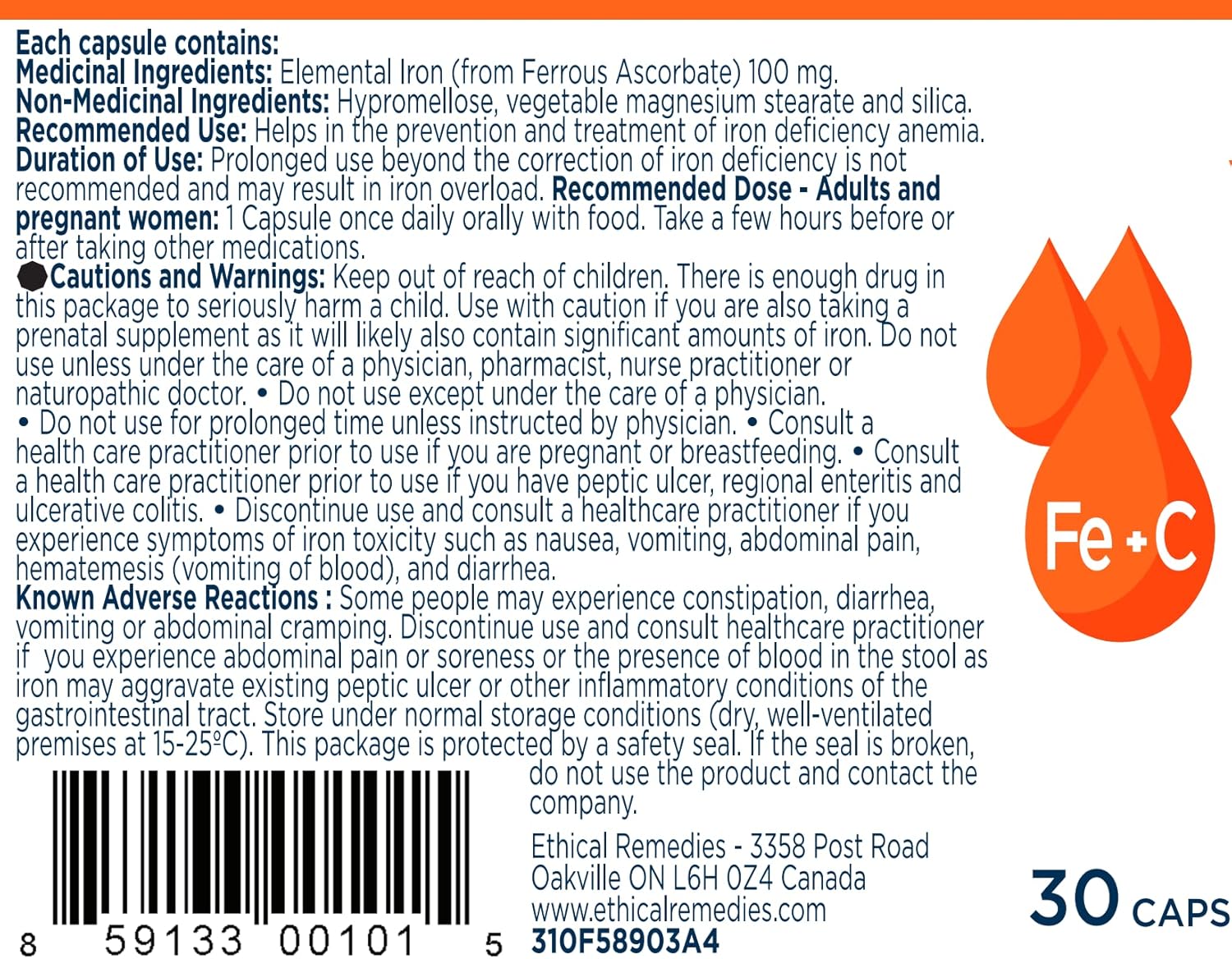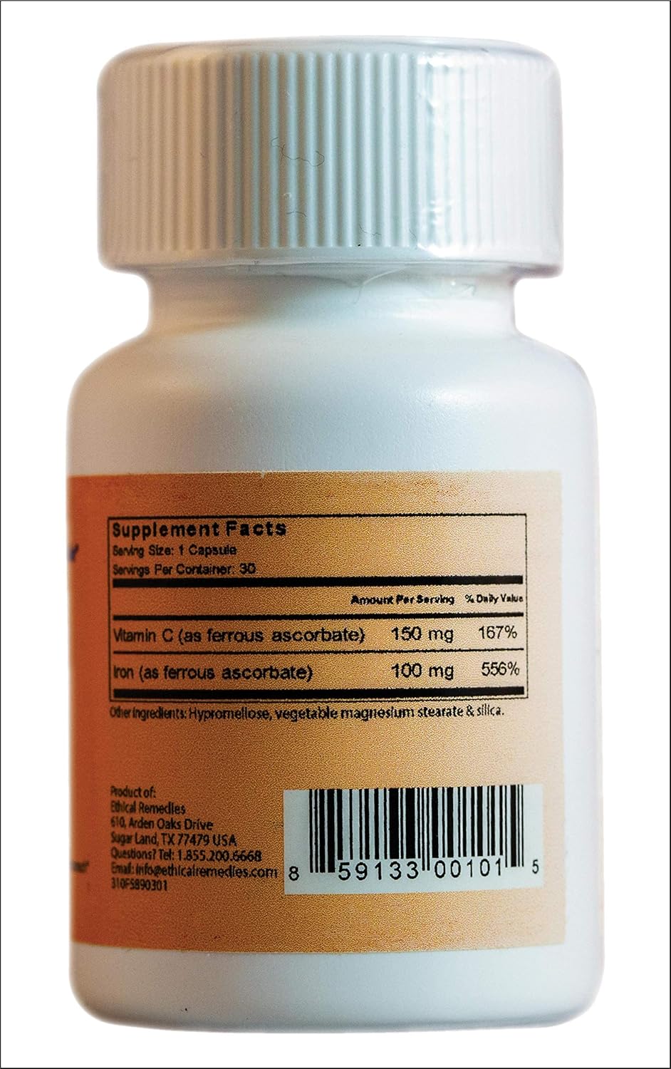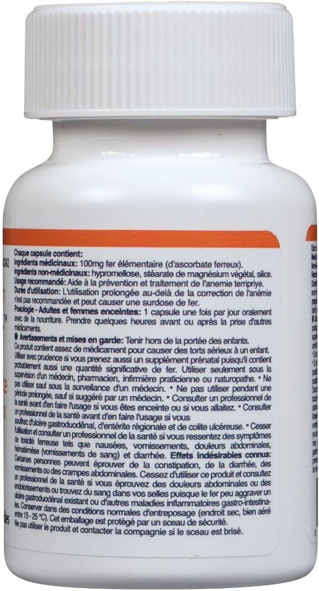 EBMfer 鐵劑,含維生素 C | 每日 1 粒 | 溫和 | 純素 | 提升能量 | 100 毫克高效能 | 30 粒膠囊