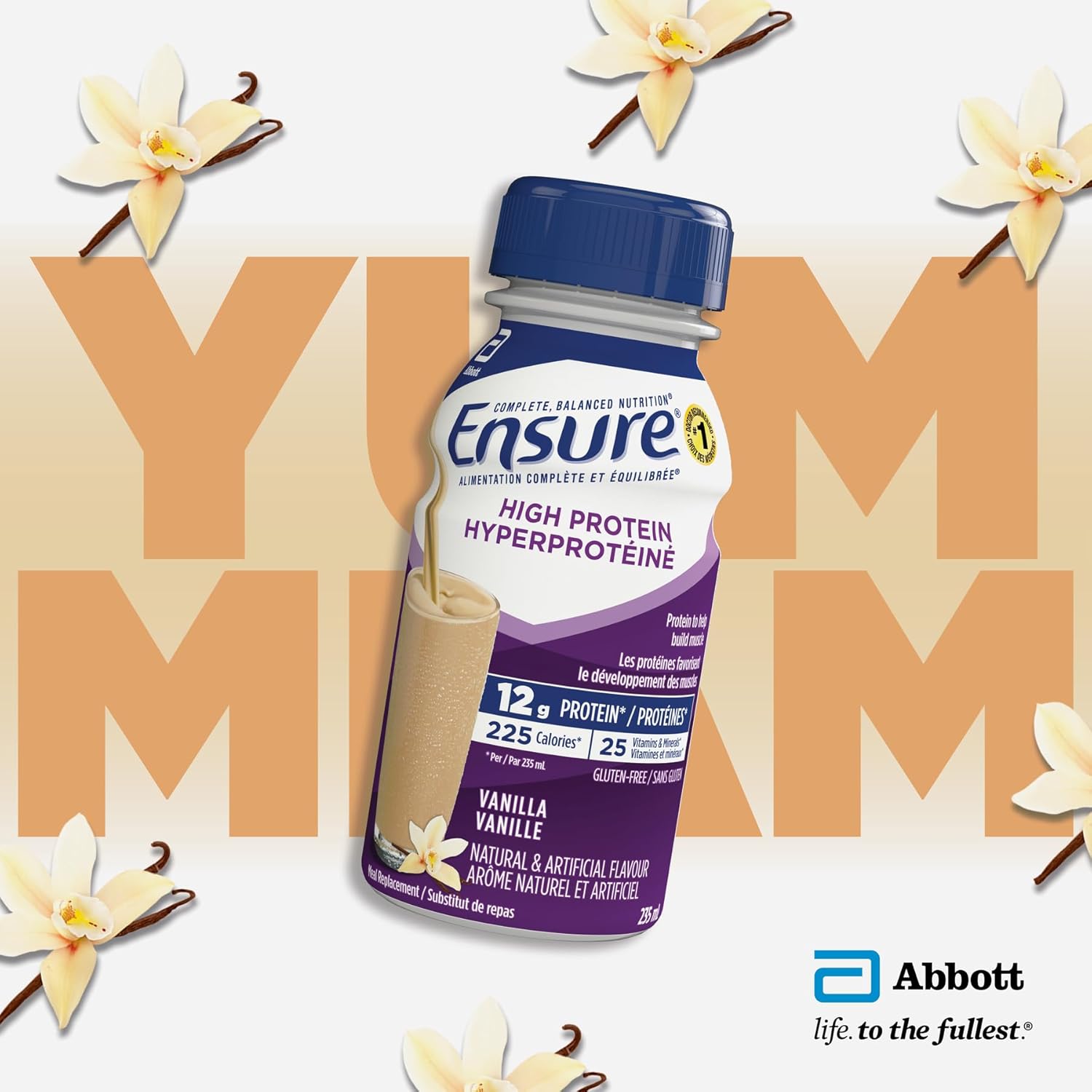 Ensure 高蛋白 12 克,代餐奶昔,含蛋白質的蛋白質奶昔,有助於增強肌肉,香草味,6 x 235 毫升瓶裝
