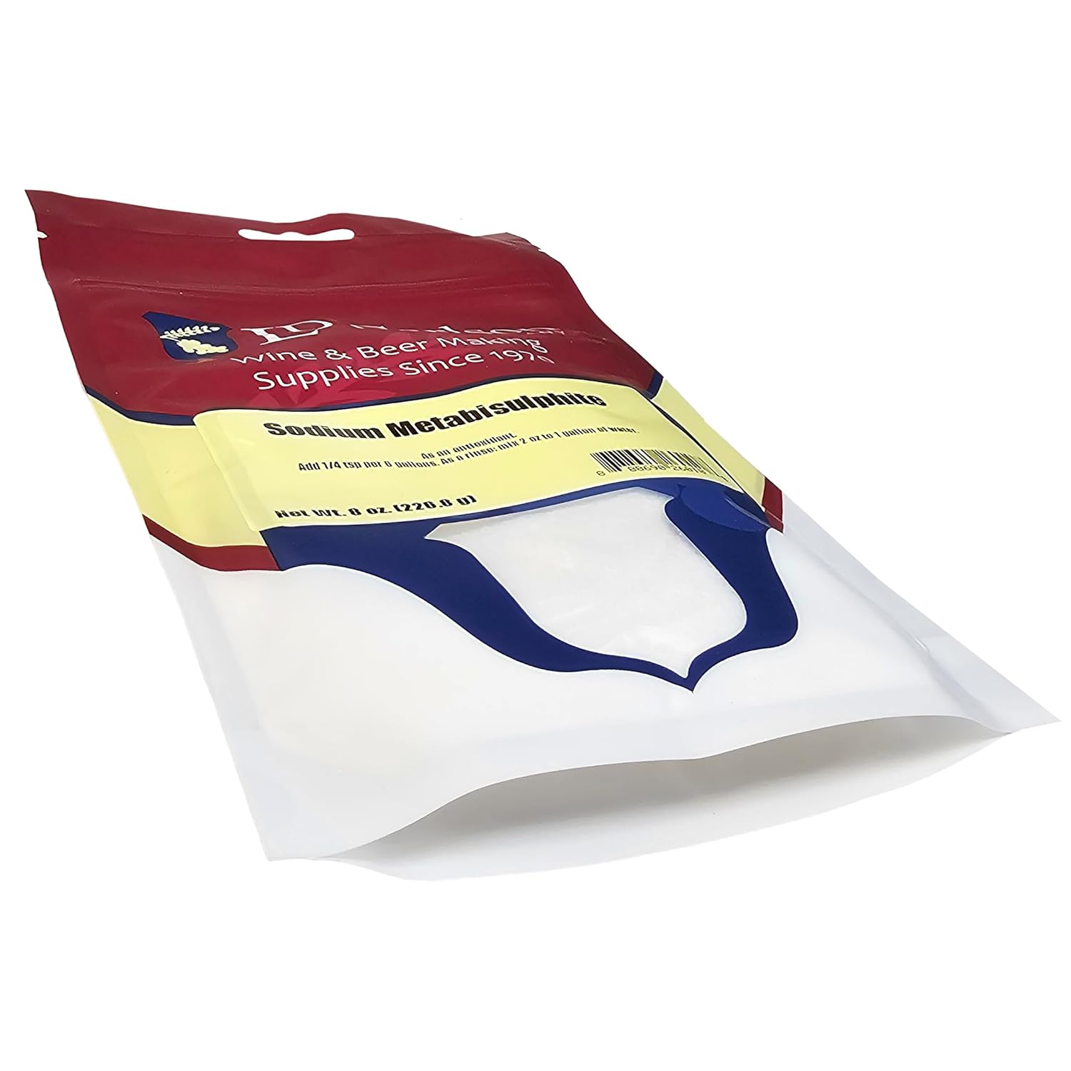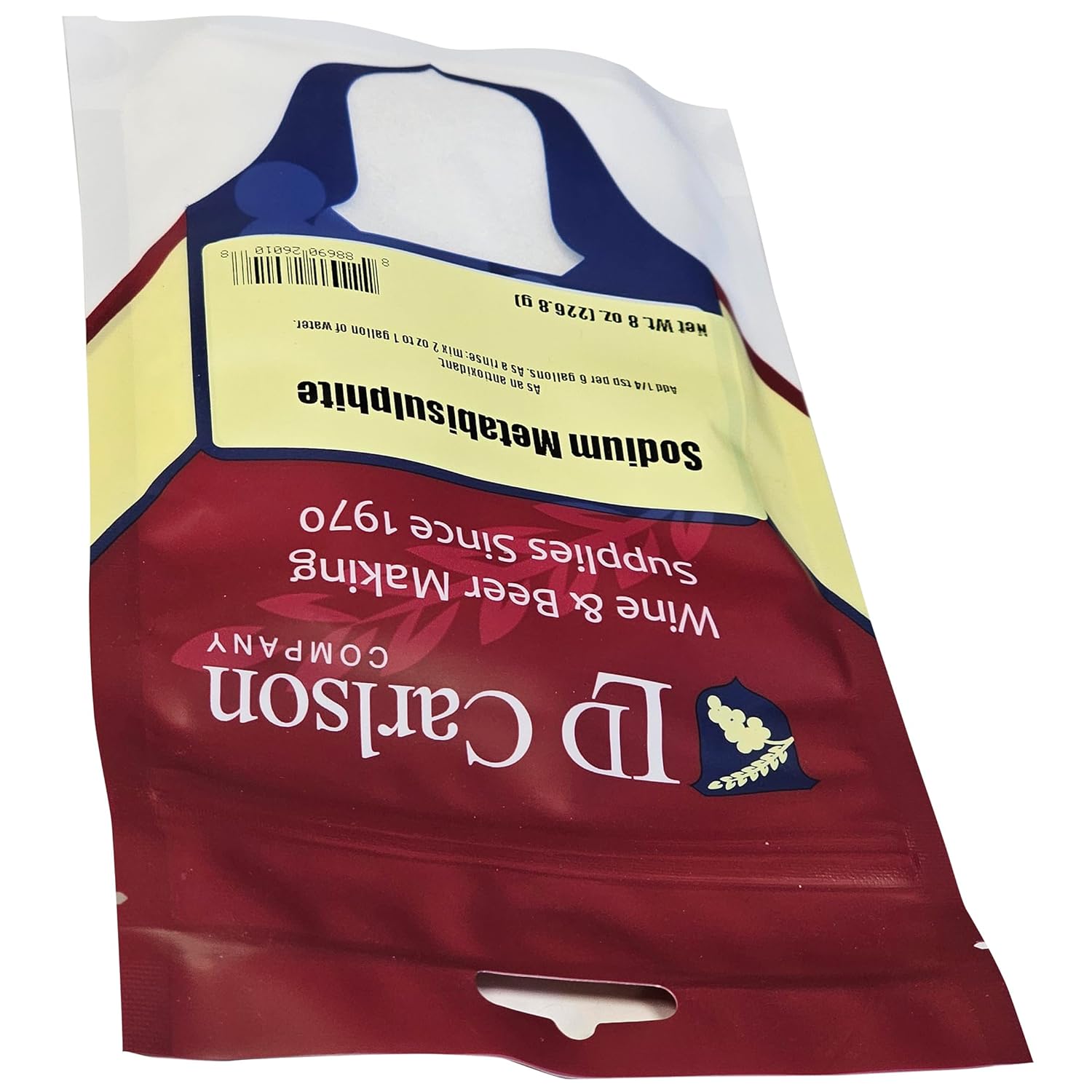 食品級焦亞硫酸鈉,適用於葡萄酒或任何食品飲料。有效減少加工過程中或加工後的氧化。在發酵前或裝瓶前抑制野生酵母和細菌。也可用於設備使用前的消毒。每6加侖葡萄酒添加1/4茶匙,在發酵前後穩定葡萄酒。將2盎司(約50毫升)加入1加侖水中,可用作消毒劑。