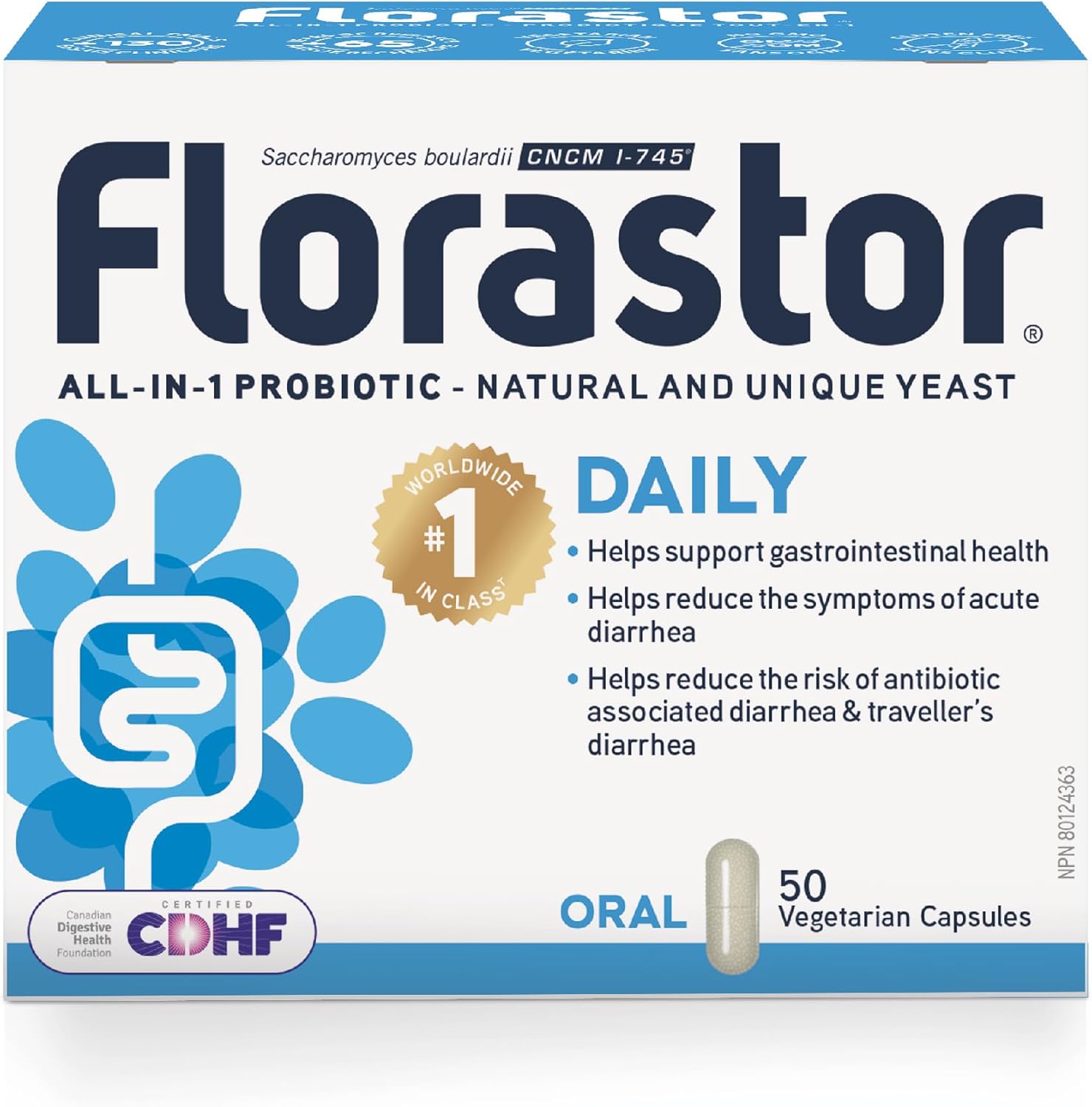 Florastor - 布拉氏酵母菌 CNCM I-745 - 每日多效合一益生菌 - 腸道健康和消化支持 - 支持免疫系統 - 全球同類益生菌第一名 - 成人及家庭適用 50 粒膠囊