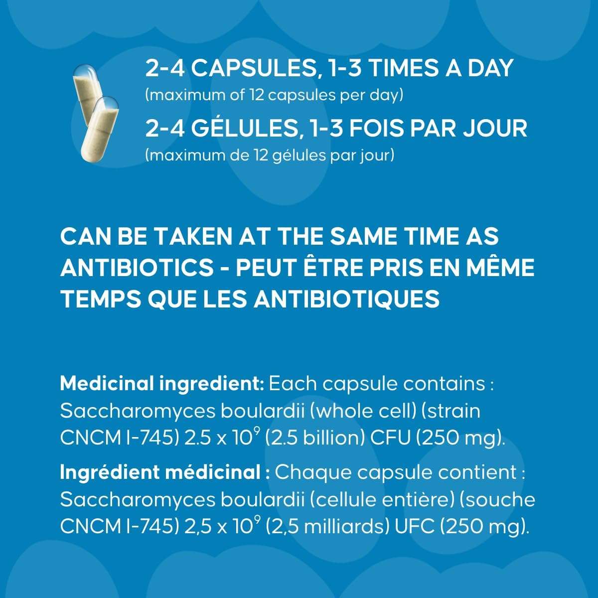 FLORASTOR 布拉氏酵母菌 CNCM I-745 - 我們利用布拉氏酵母菌(一種獨特的益生菌)的功效。我們的特定菌株可支持腸道健康,促進腸道菌叢健康,並增強您的免疫防禦能力。 .多效合一的日常腸道支持 - 使用 Florastor 的多效合一配方,簡化您的日常保健。支持胃腸道健康,增強免疫系統,治療急性腹瀉,預防旅行者腹瀉 (turista) 和抗生素相關性腹瀉。天然抗藥性。 .臨床研究功效 - Florastor 的功效已得到臨床驗證,並擁有超過 65 年的研究和 130 多項臨床試驗的支持。它可將成人抗生素相關性腹瀉的風險降低高達 84%。劑量指導 - 成人、青少年或兒童建議每日服用 2 至 4 粒。 1-5 歲兒童建議每日服用 2 粒。含乳糖。全球同類產品中排名第一的益生菌 - Florastor 是值得信賴的益生菌品牌,有助於實現和維持健康的消化平衡。 Florastor 的菌株已獲得加拿大消化健康基金會 (CDHF) 的認證。