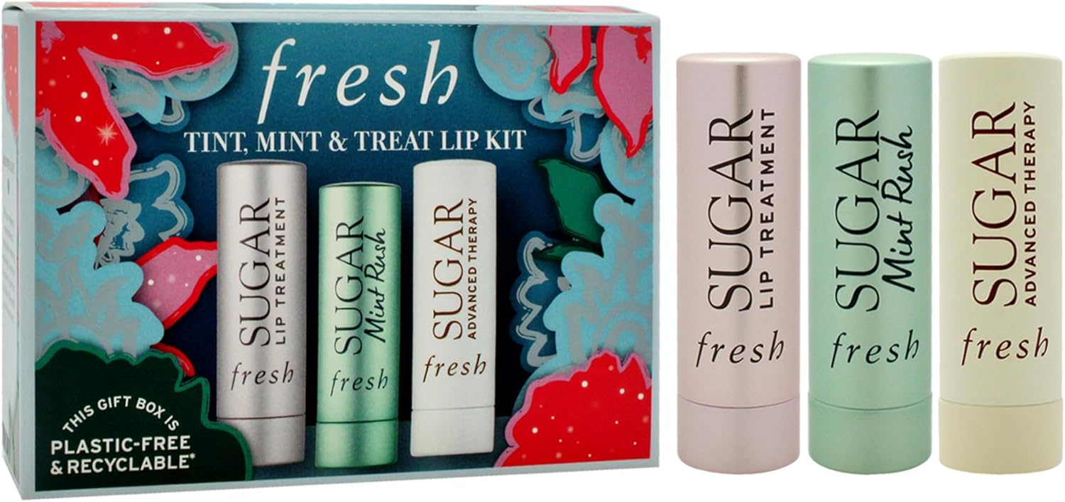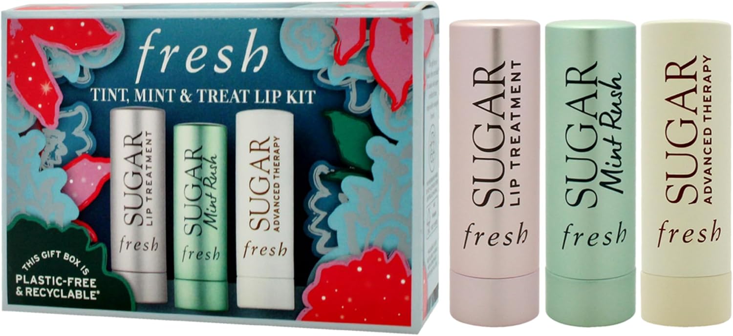 清新潤色、薄荷和潤唇膏套裝 0.07 盎司糖潤唇膏 - 玫瑰、清新潤唇膏 - 薄荷香、高級護理潤唇膏女士 - 3 件