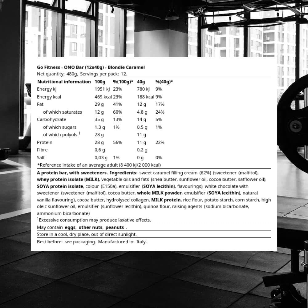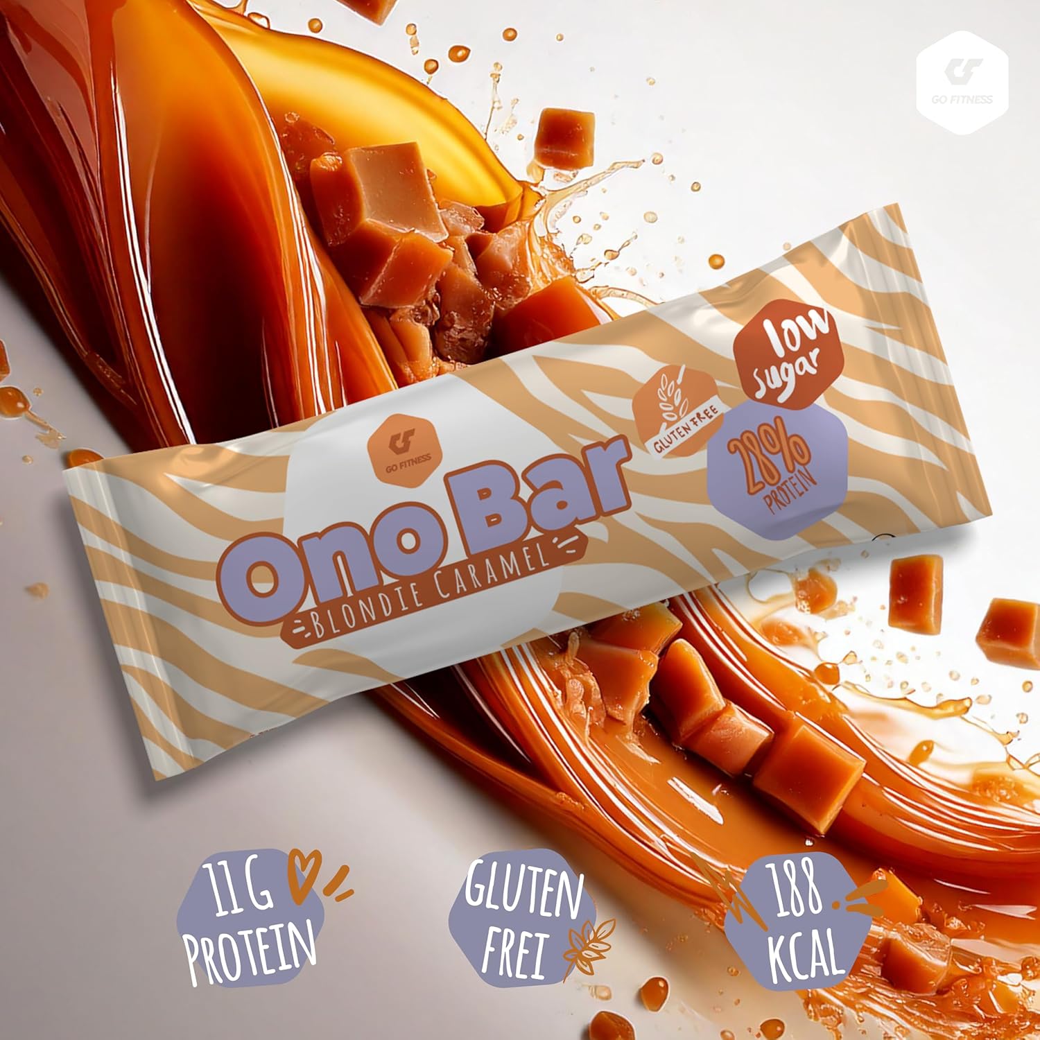 GoFitness Nutrition ONO Bar 金髮焦糖口味 - 12x40克裝 - 高蛋白健身棒,支持肌肉生長、提升能量,也是健康零食
