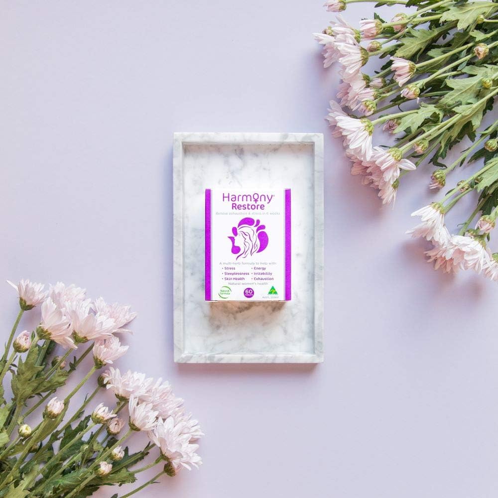 Harmony Restore 採用經過臨床試驗的草藥以及傳統中藥配製而成,有助於在 6 週內緩解女性荷爾蒙症狀、荷爾蒙盜汗和皮膚問題、疲憊和壓力症狀。