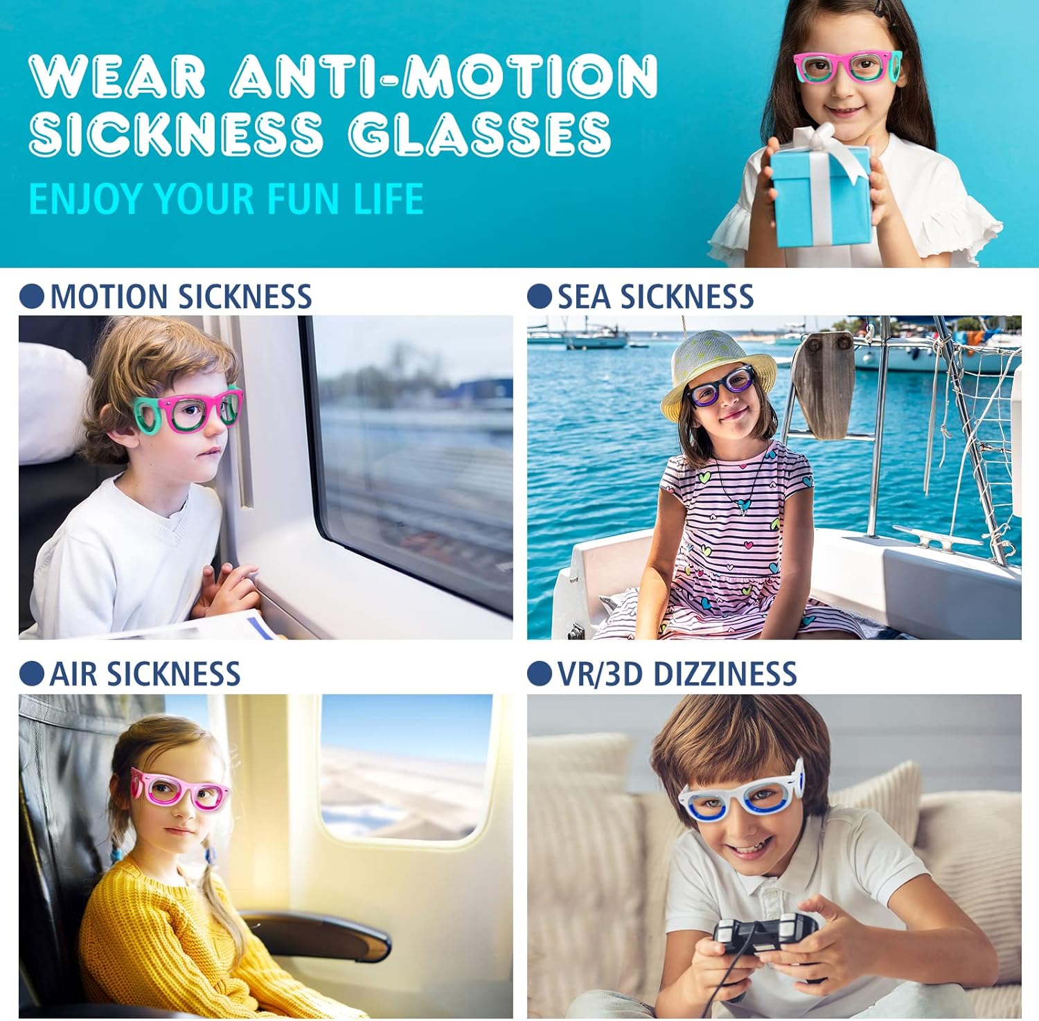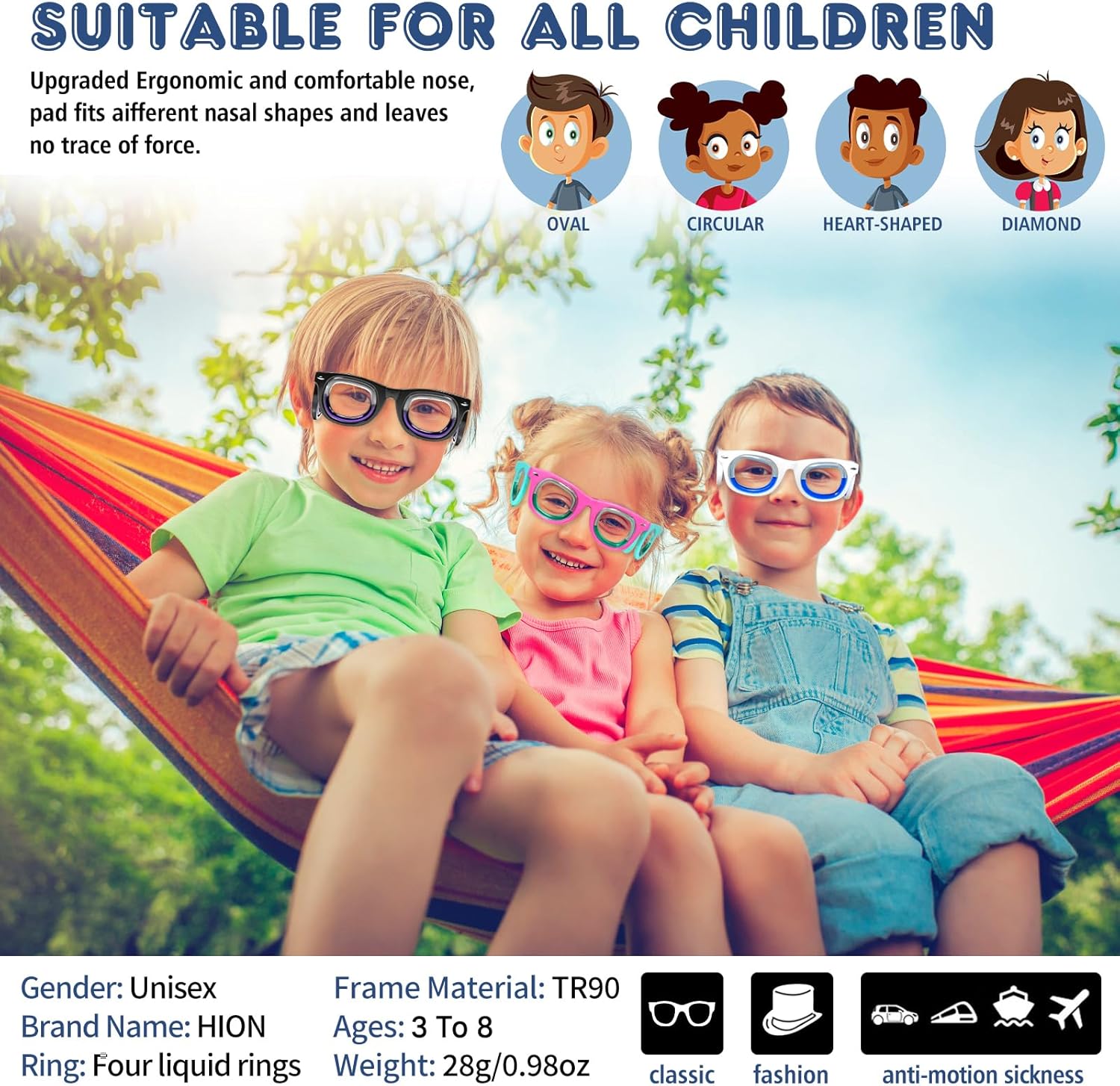 Hion 兒童防暈動病智慧眼鏡(適用於 3-8 歲兒童)– 超輕便攜緩解噁心液體眼鏡,可緩解暈車、暈機、暈船 – 兒童旅行/郵輪必備