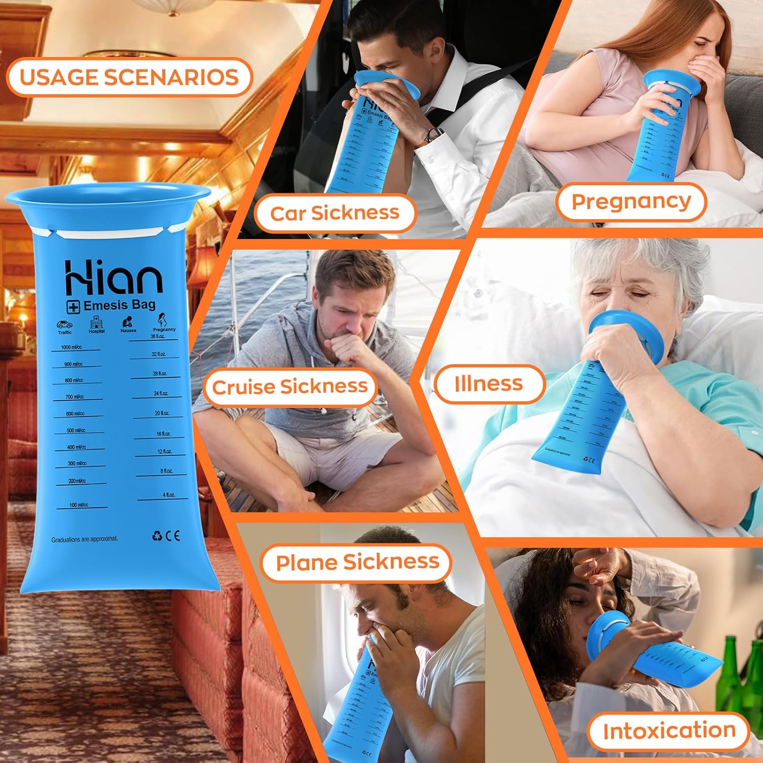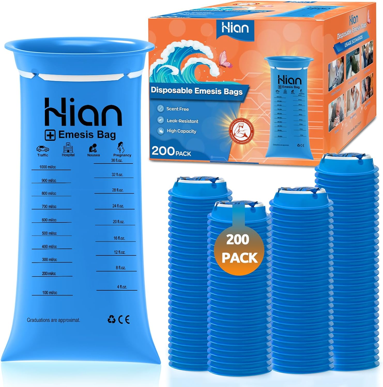Hion 一次性嘔吐袋 - 200 包 1000 毫升嘔吐袋 - 防漏,醫用級,便攜 - 非常適合暈車、暈機、孕婦